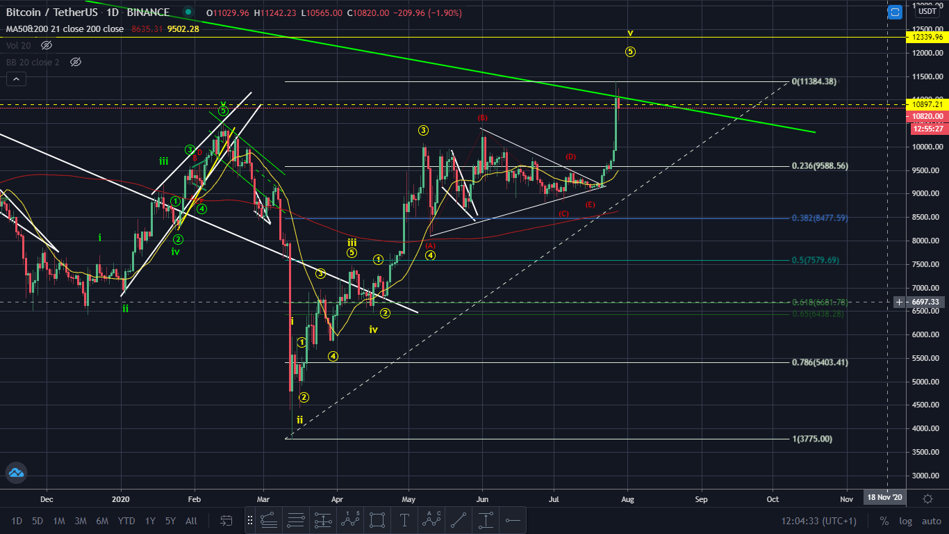 b. Go back up and test the $12K going to $14K range (For 2.618 Fib).
