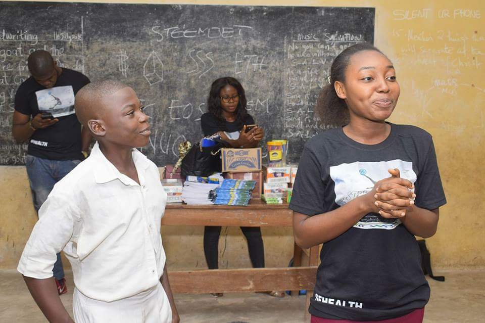 After everything which took about 3hrs 25mins, gift items were shared, books, pens amongst other materials were distributed to the kids to aid their academic careers. Also we had two steemjet ambassadors who performed extraordinary well during the Q&A sessions. They were rewarded with more materials and also a customized steem high polo for them.