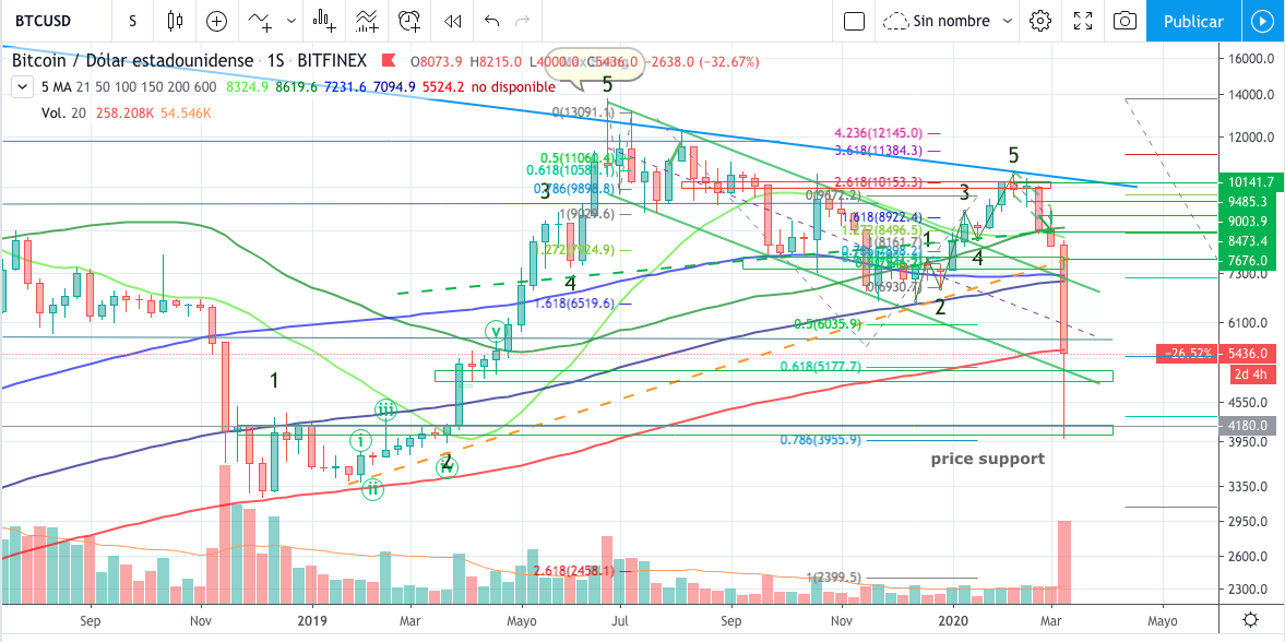 Bitcoin (BTC / USD) Coronavirus effect - In support line