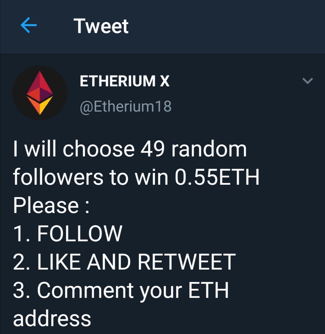 ETHERIUM X 0.55ETH Giveawayonze (58)in #steemleo • 7 years ago Go here and try your luck: https://twitter.com/Etherium18/status/1150334754471833600 #palnet #cryptocurrency #twitter #eth