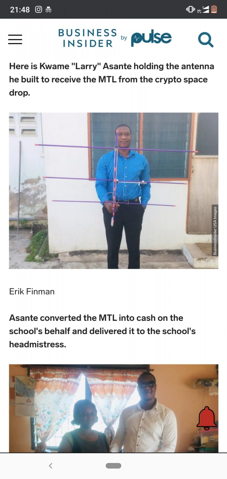 A high school dropout just transferred cryptocurrency via satellite to a school in Ghana. No internet or smartphones involved. No fancy, expensive infrastructure.