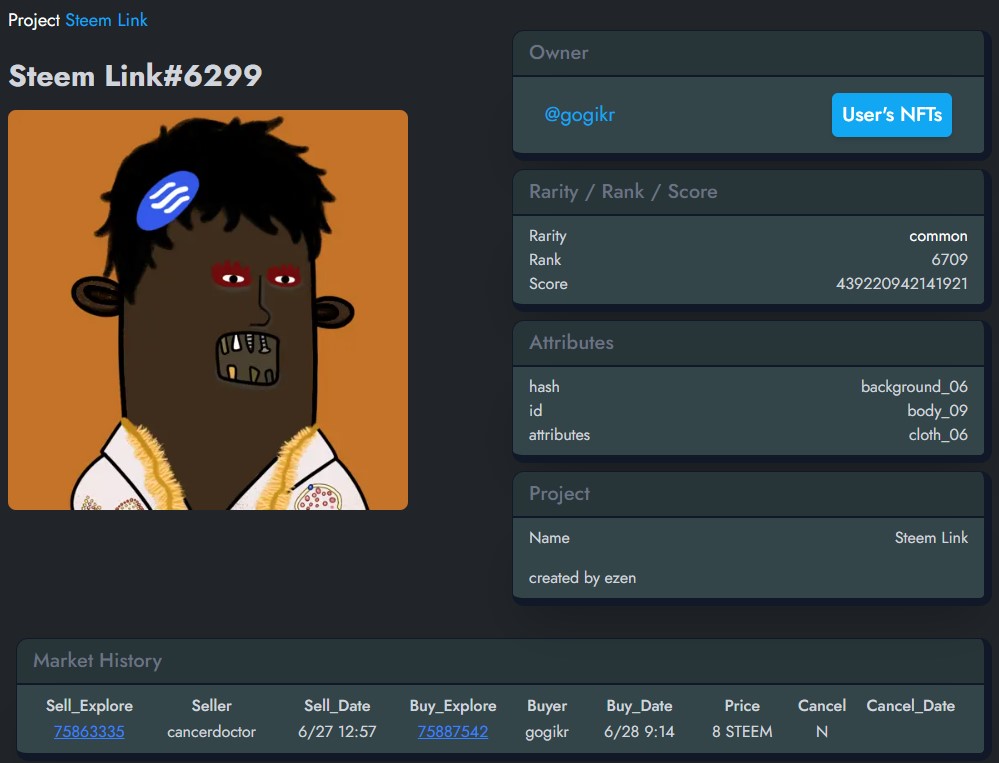 주신 스팀 상금으로 많은 야근과 콜라로 흑화된것 같은 NFT하나를 구매했습니다ㅎㅎ