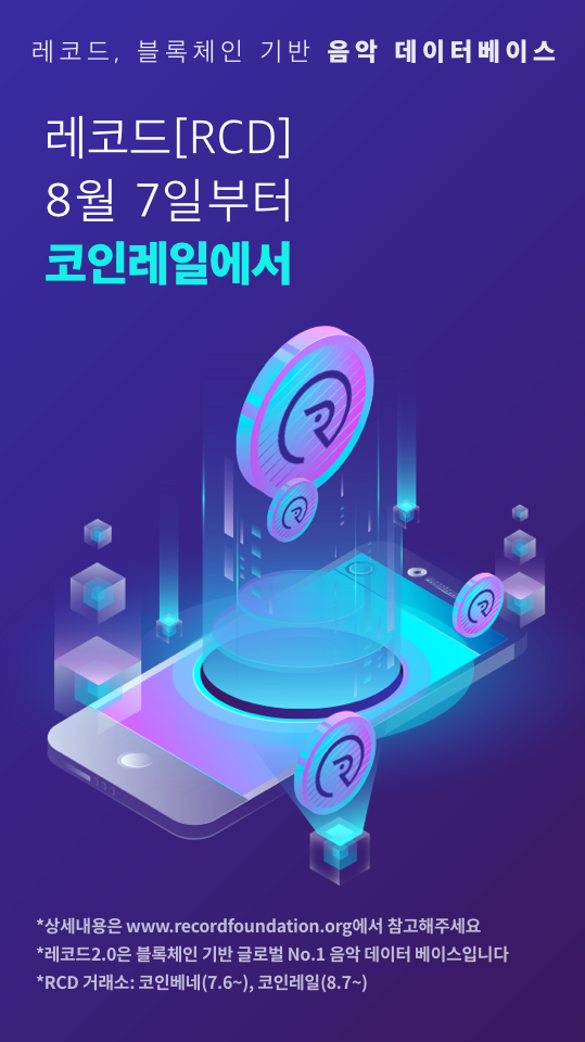 코인레일 RCD(레코드) 에어드랍steemCreated with Sketch.kstop1 (77)in #steemlite • 8 years ago (edited)코인레일에서 RCD(레코드) 에어드랍을 진행합니다. 레코드는 블록체인 기반 음악 데이터베이스 프로젝트입니다. 레코드 프로젝트가 잘 진행되어 음원 시장이 투명해 지길 기대합니다. #jjangjjangman #coinrail #kr-event #busy