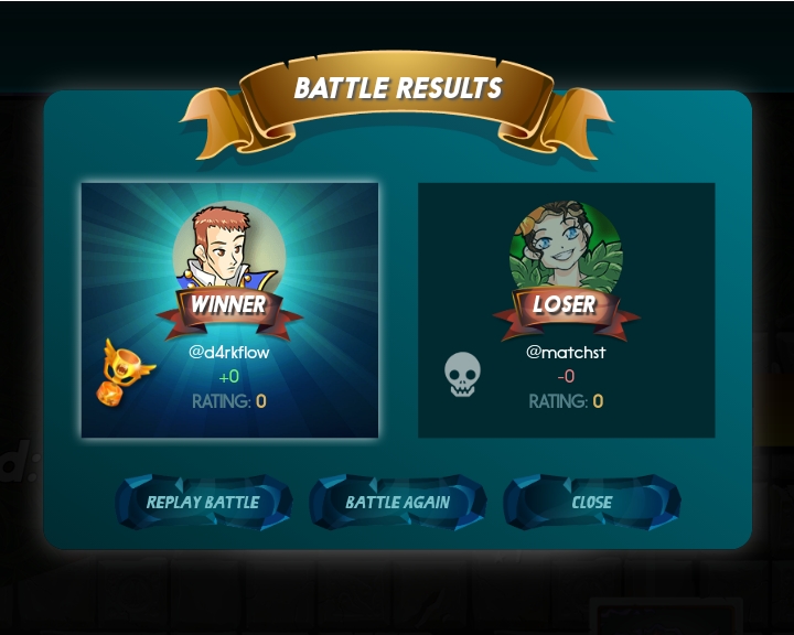 Primeira vez jogando Steemmonsters e primeira partida ganha 😃!