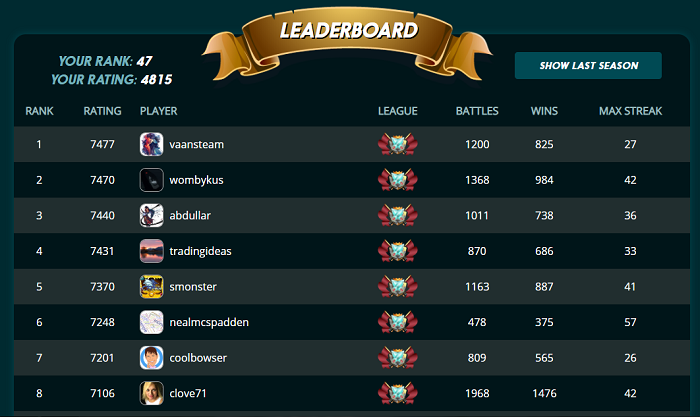 오늘 현재 리더보드에 보면 상위 10위까지는 레이팅 점수가 7000점이 넘네요