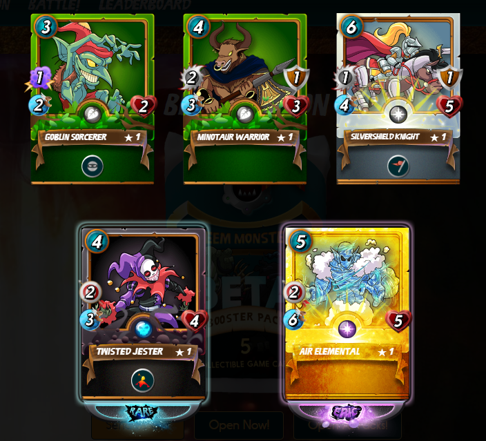 계속 되는 골드 카드 럭키 행진hoa0123 (55)in #steemmonsters • 7 years ago 스몬 게임에서 퀘스트가 주어지는데 10번을 이기면 보너스로 1개의 부스터팩을 받게됩니다 오늘은 데쓰 팀으로 10번을 이기면 됩니다 요즘 수준이 많이 높아져서 승률 60프로 넘기도 힘듭니다 힘들게 해서 받은 부스터팩을 드디어 오픈 짜잔~~~ 골드카드 오픈, 그것도 에픽으로 이거 실화냐?? 보너스 부스터팩은 골드 카드가 안나온다고 들었는데 에픽골드 카드가 나왔다 이맛에 스몬게임 하는것 아닐까요 ㅎㅎㅎㅎ 다음 퀘스트 달성이 기대됩니다 #kr #busy