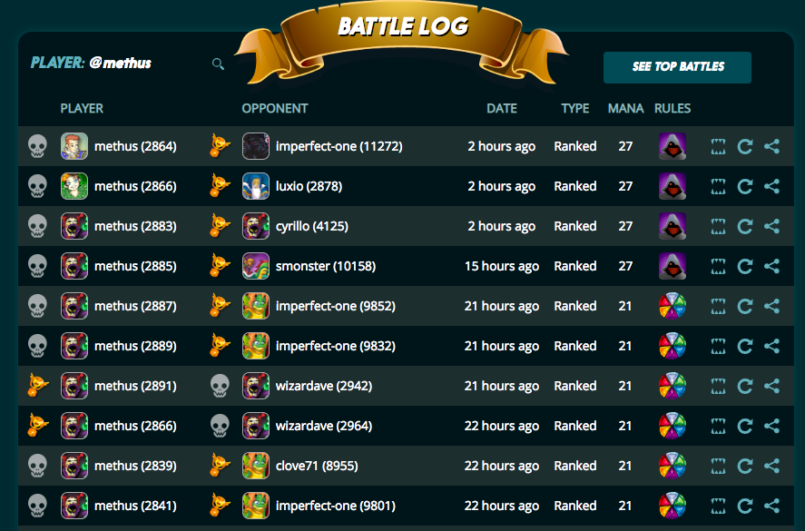 7 out of 10 of these matches are completely unequal, and I had no chance of winning them. Thinking there must be a problem, I joined the Steem Monsters discord server today to look for some answers. Surprisingly, I found out that this is all on purpose, but the matching algorithm is being reworked for a future release. The issue comes in with this sentence from the Leagues overview page: