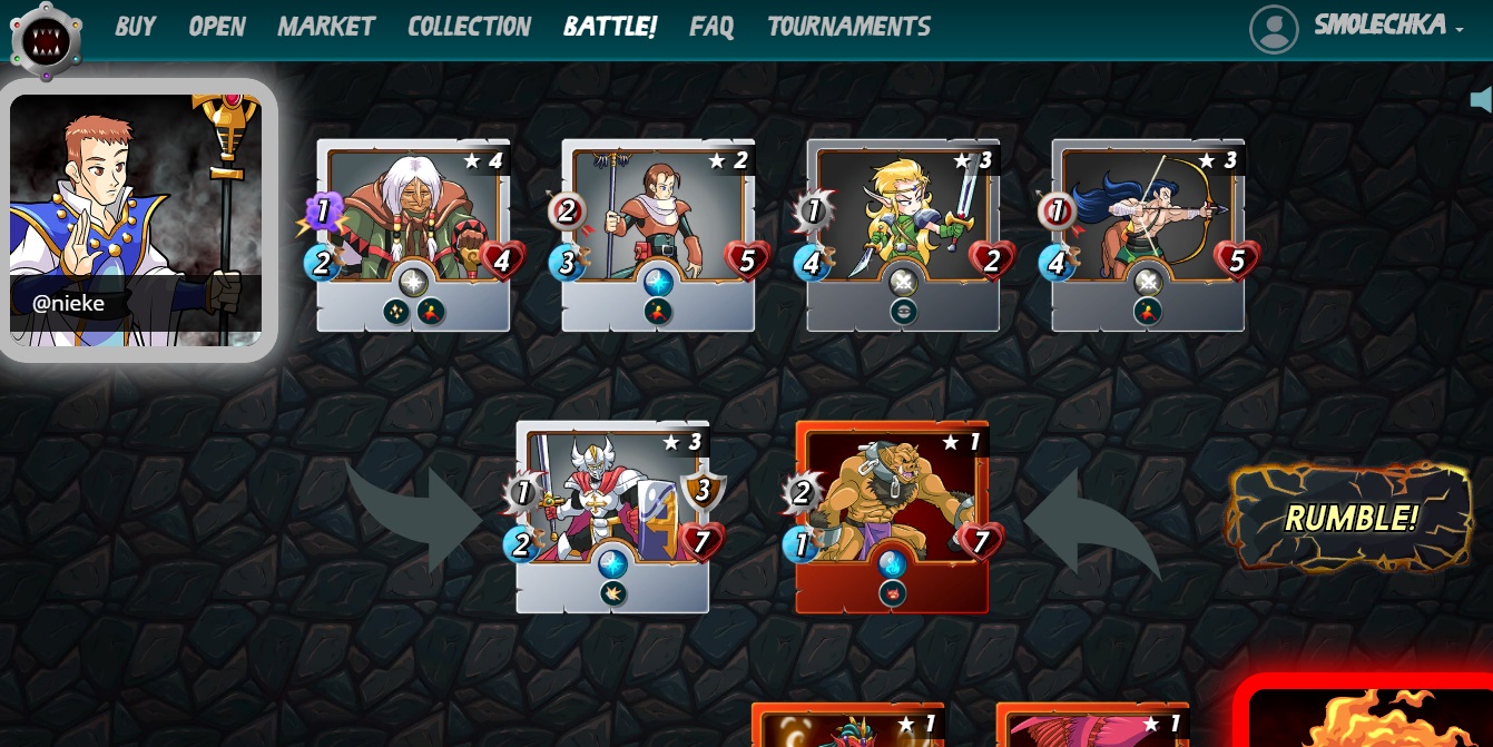 Steemmonsterssmolechka (60)in #steemmonsters • 7 years ago Удивительный бой, казавшийся проигрышом по итогу оказался победой Всем хорошей игры! #game #blockchain