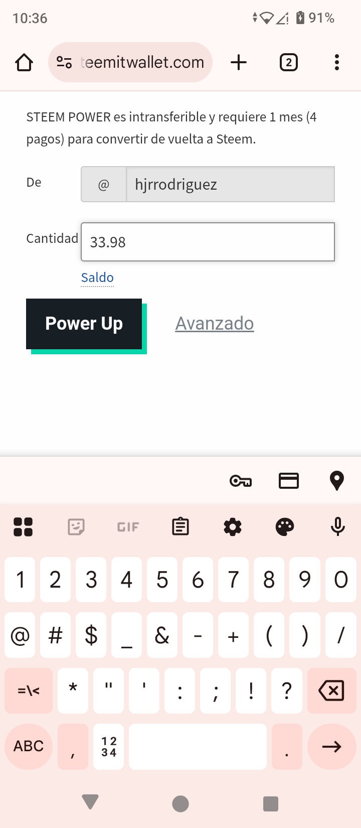 Esa fué encenderlos 33.98 Steem para potenciar aún más mí cuenta y qué se noté mí compromiso se que es algo importante el aumentar mí #SteemPower para dos cosas esenciales el utilizarlos para delegarlos ó tener la posibilidad de votar un poco más y por supuesto seguir generando #SteemPower.
