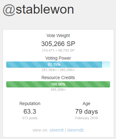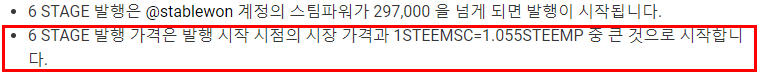 1STEEMSC = 1.4STEEMP입니다.7STAGE 발행이 되려면 @stablewon 계정의 스팀파워는 385,000 스팀파워보다 같거나 많아야 합니다.