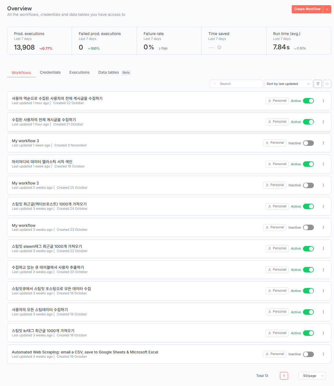 n8n의 설정을 좀 변경 했습니다.