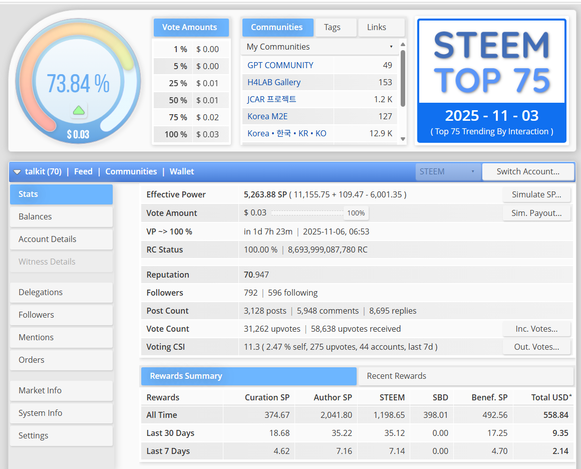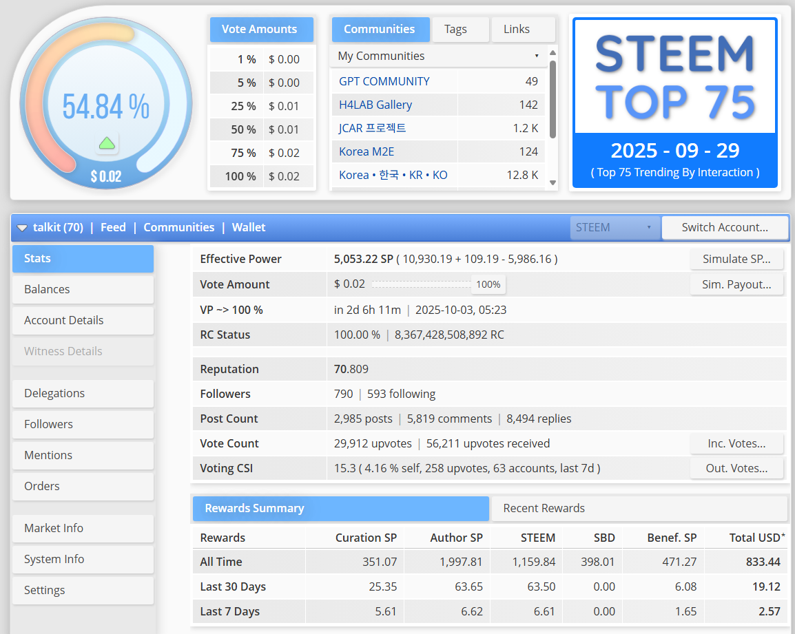 아마 더이상 파워를 임대해주진 않아서 ^^ 비슷하지 않을까 싶지만 @talkit 계정에서 가진 순수 파워는