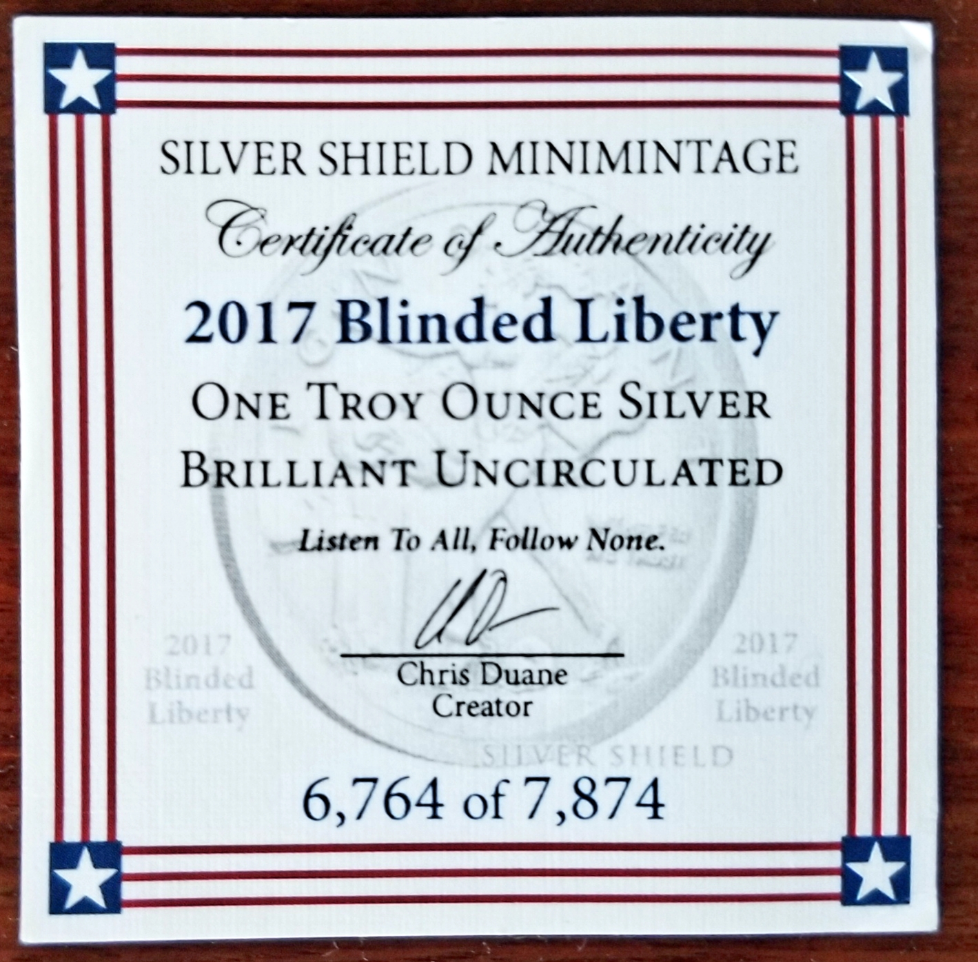 It also comes with a certificate. Low mintage of just few thousand. And signature from Chris Duane, who also has a youtube channel Truthnevertold talking about silver related issues