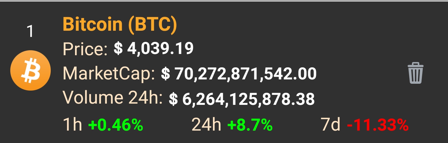 Mid week is looking better than the start of the week! Crypto's seem to be making a recovery and bitcoin has broke back through the $4,000 mark.