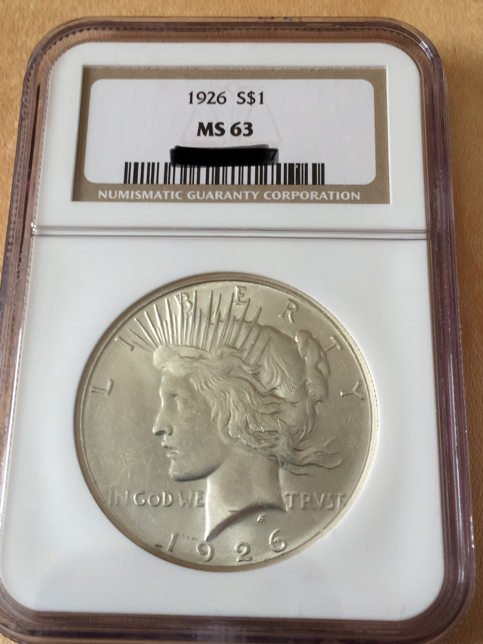 So what I have for you today is my 1926 Philadelphia strike NGC MS63 graded Peace Dollar. This coin was purchased at a coin show in Maryland a few years back. It jumped out at me right away.