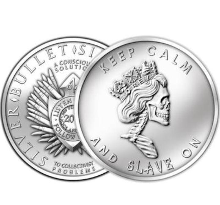 The Silver Bullet Silver Shield (SBSS) Slave Queen 1 oz Silver Round is a provocative collector's piece designed by Chris Duane and sculpted by Heidi Wastweet. First released in 2013, the round is intended as a satirical critique of the British Royal Family and the "Debt & Death" banking paradigm.