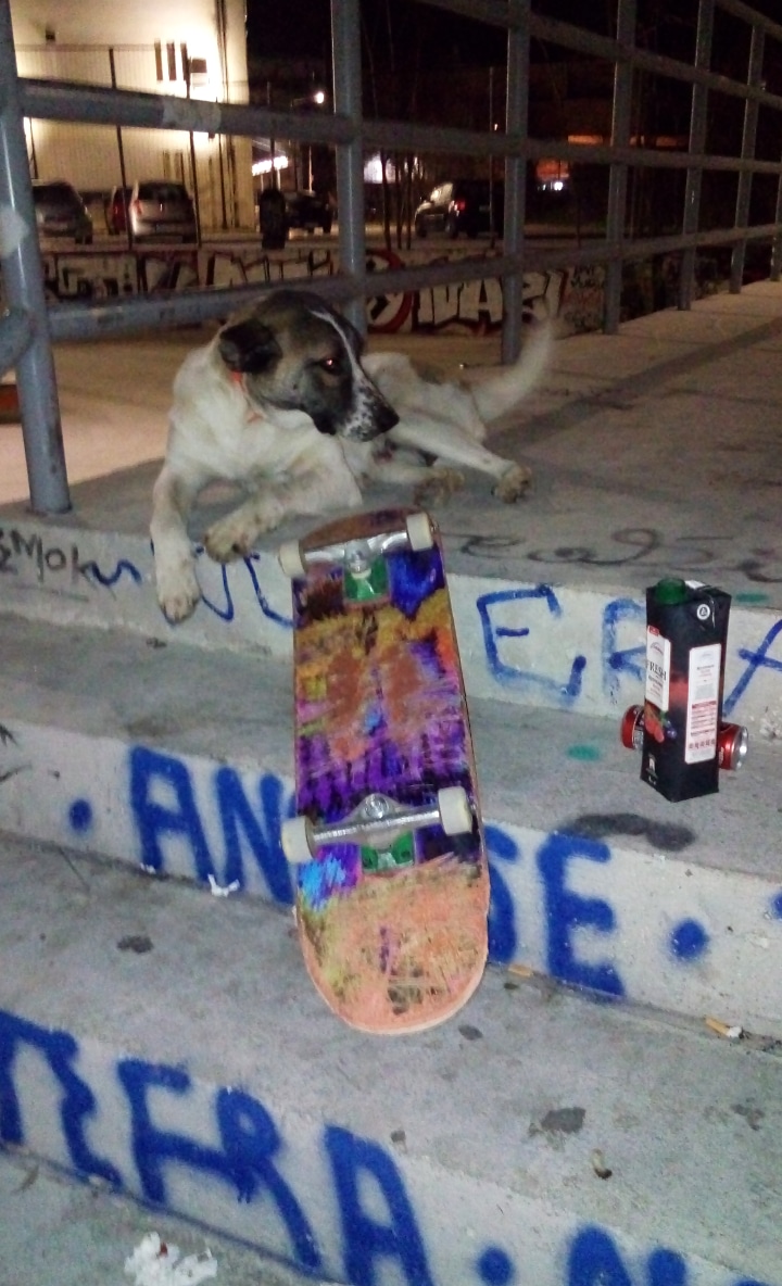 Skater dogdikayskate (60)in #steemskate • 6 years ago Skatepark Ioannina 3/2/2020 Protect the animals #skatepark #skater #dog #skateboard #night #animal