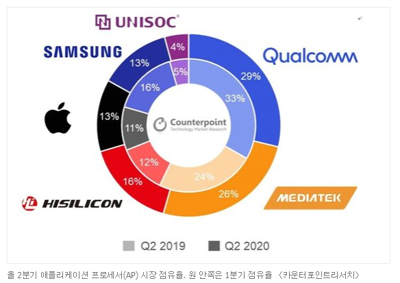 [경제] AP시장의 화웨이, 그리고 반사이익들hongstein (69)adminin STEEM_UP_스팀업 • 6 years ago 지난 15일 화웨이에 대한 제재가 본격화 되면서 화웨이의 공백이 생겼습니다. 우리 입장에서는 분명 우리 나라 기업이 잘 되리라 예상하지만, 해외 연구조직에서 나타나는 발표는 다르네요. 화웨이의 공백은 애플, 하이실리콘, 미디어텍으로 분산되었습니다. 아쉬운 것은 삼성의 지분이 3%가량 줄어들었다는 데 있죠. #ap #qualcomm #samsung #unisoc #mediatek