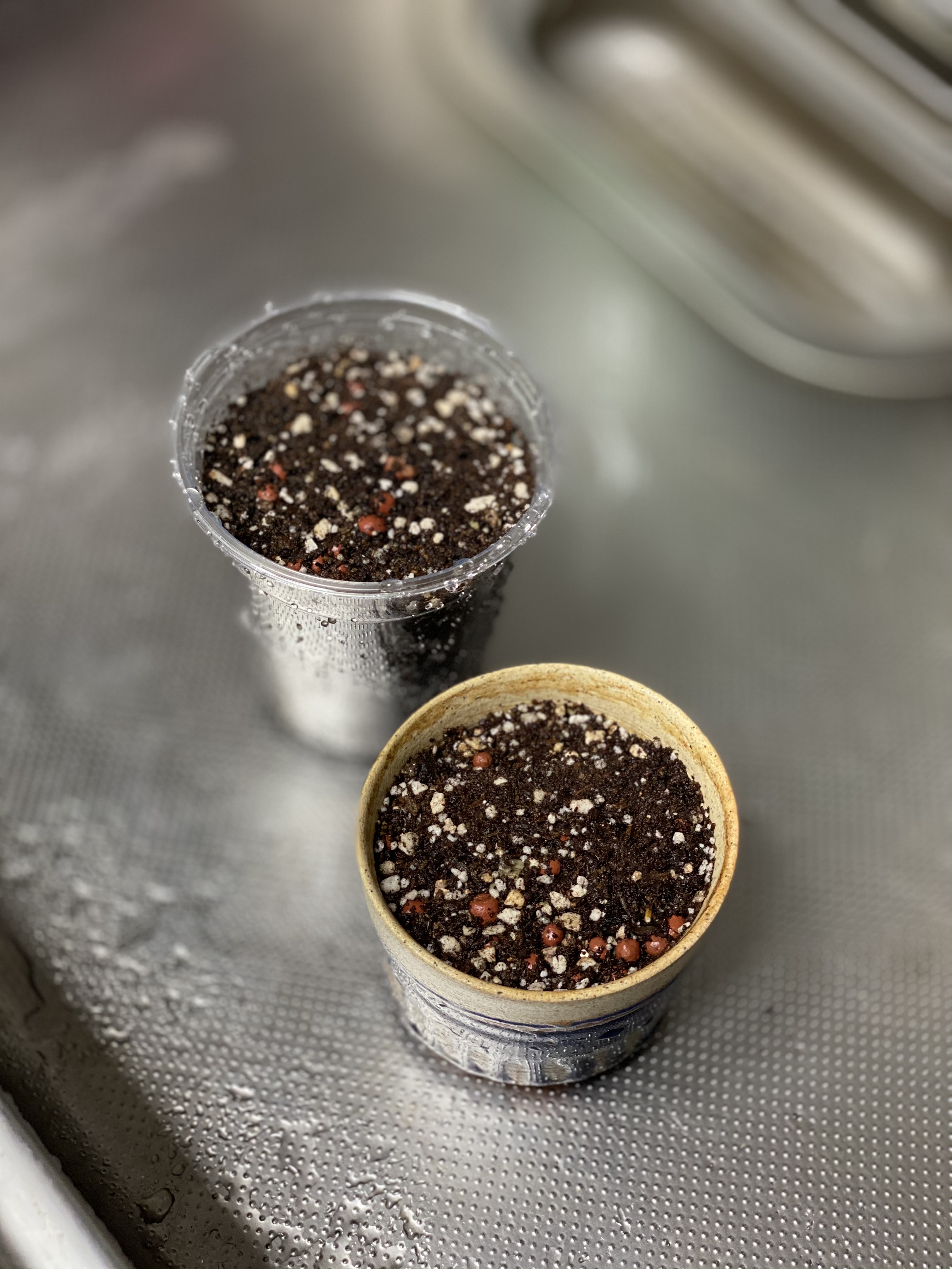 사과 하나에서 5개의 씨앗을 발췌하고, 집에 굴러다니던 작은 화분에 심어보았다. 심는길에, 미모사 씨앗도 파종을.