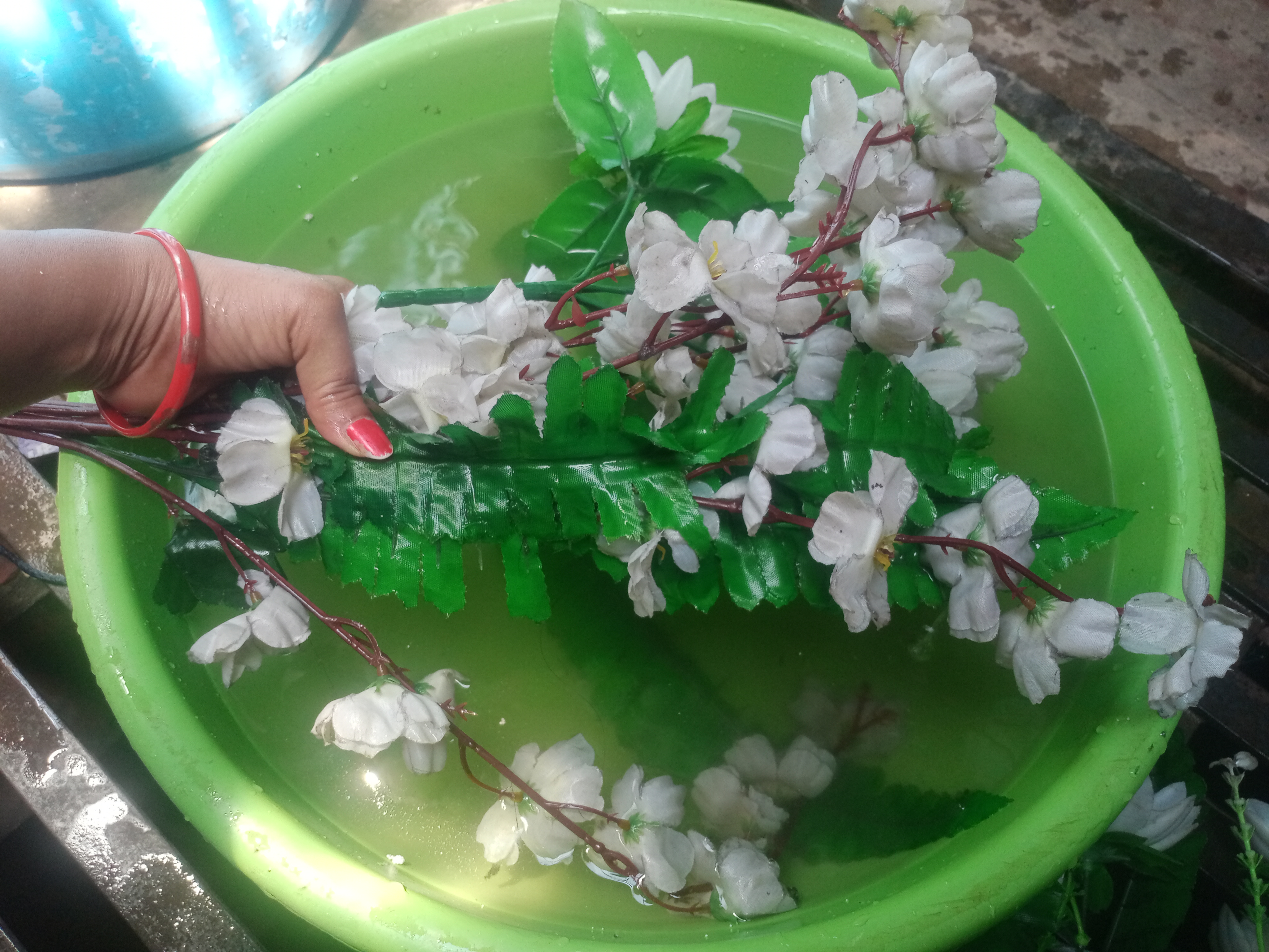 A STEEM VIDEO :- The artificial flowers were cleaned by washing them with water.