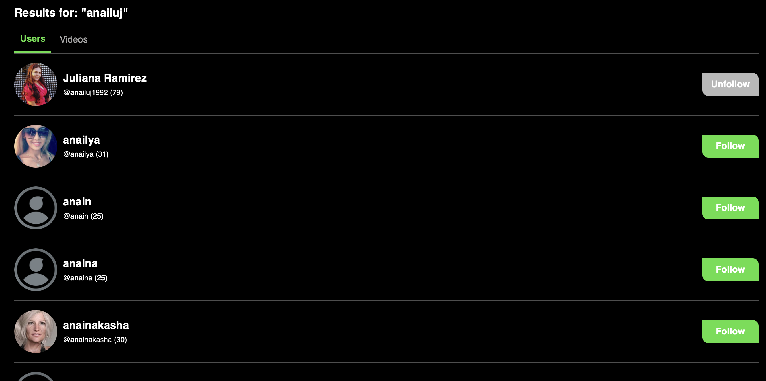 You can also find your favorite users, writing a username that is close to the original username of the person you are looking for, it does not need to be 100% the same, just have certain similarities and you will have results with the matches closest to your search.
