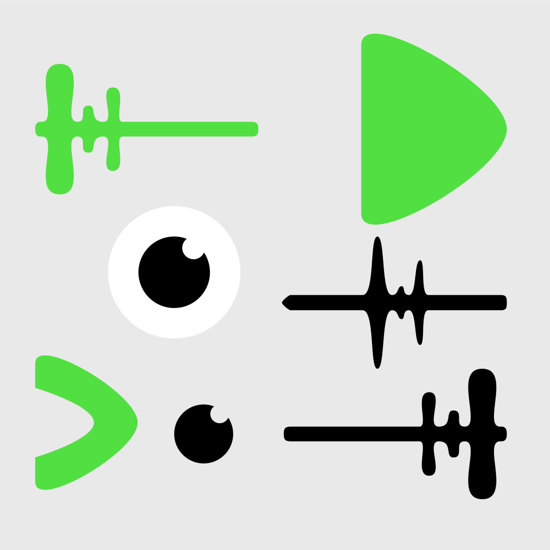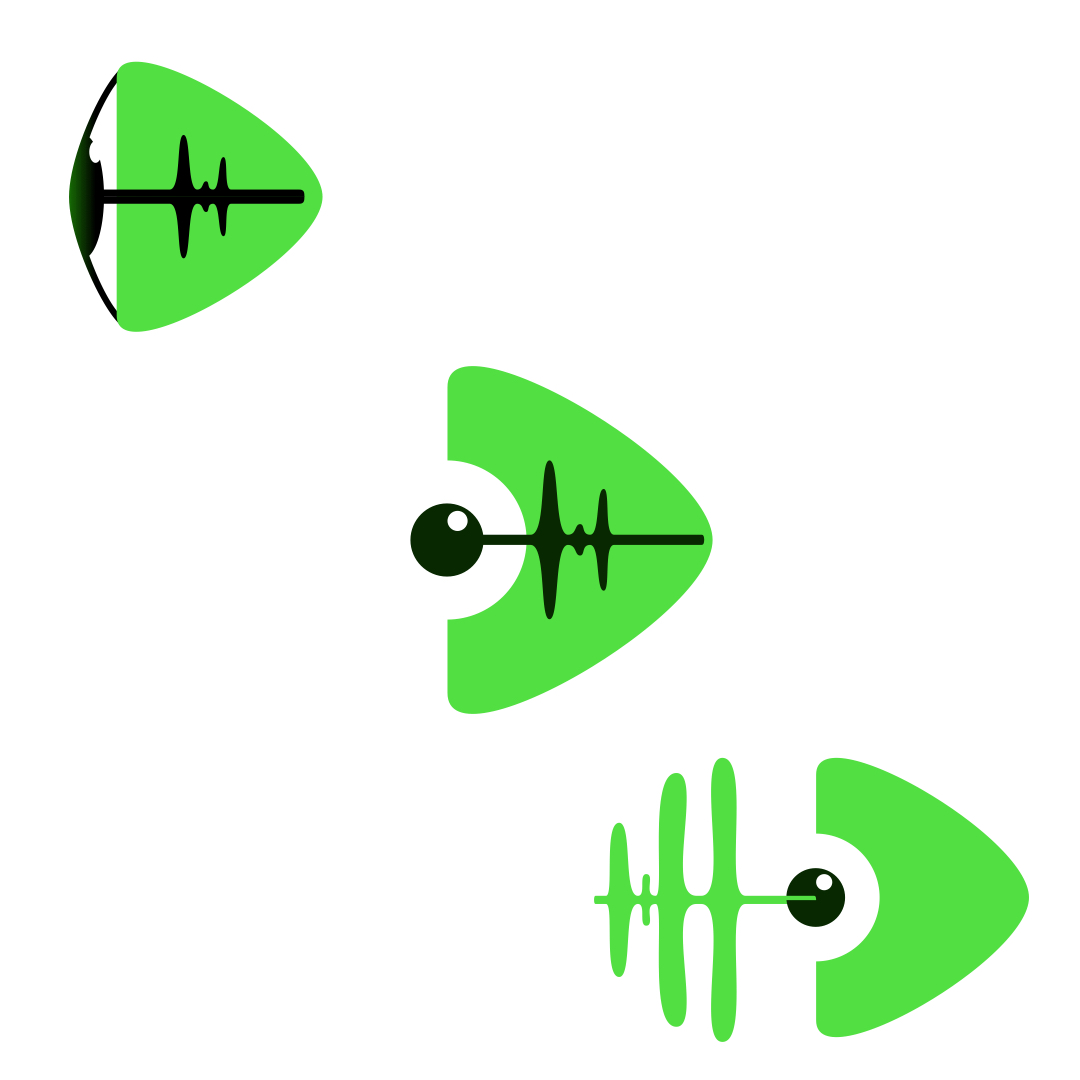 Playing a little with the shapes and concepts we developed several simple icons that include the eye of the visitors, sound waves, and the Play triangle. Taking these graphic elements into account, we begin to create different proposals to evaluate their functionality and development of the implicit concept.