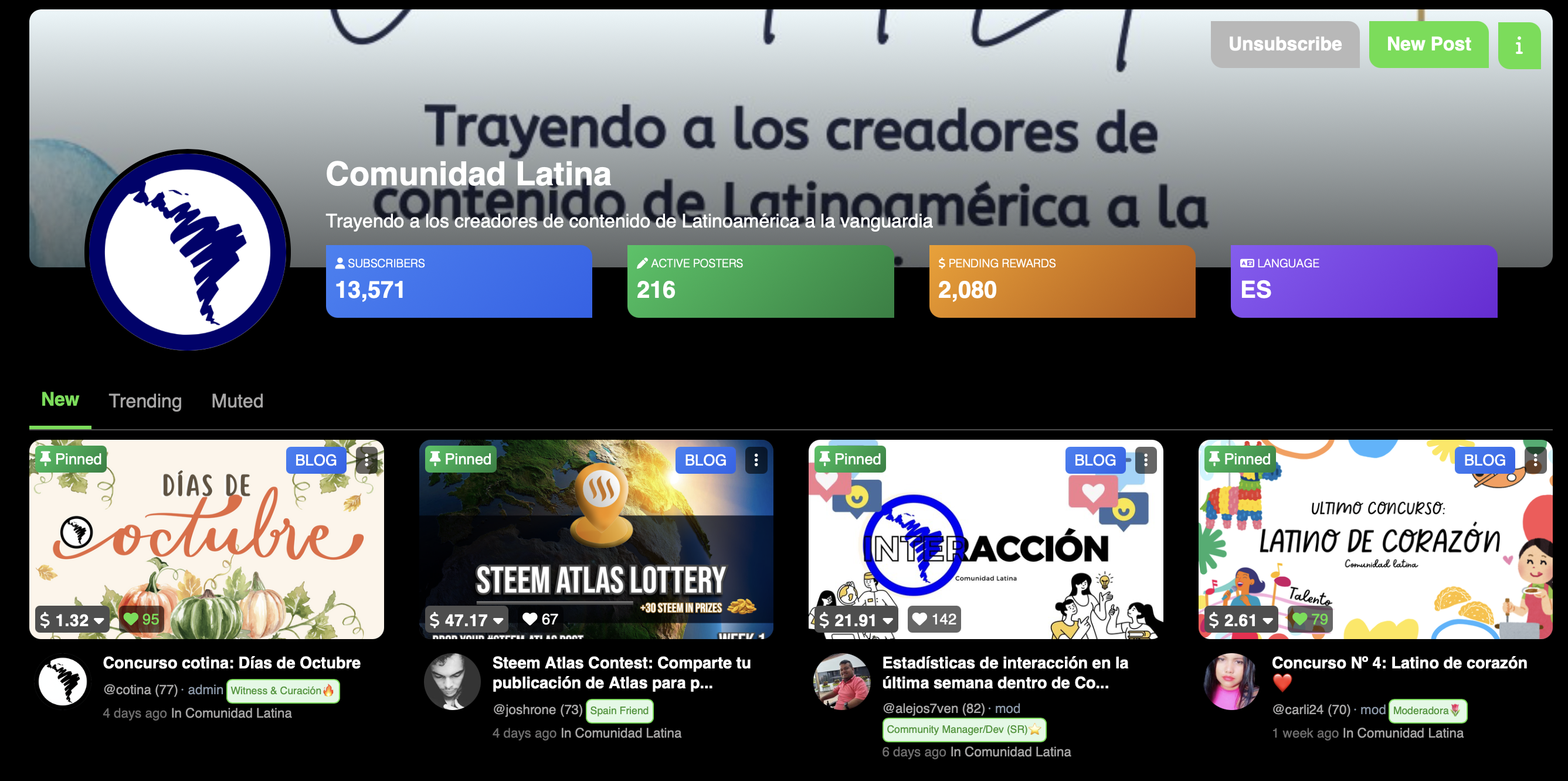The communities also followed the same path, implementing the cover photo, relocating the action buttons and highlighting in very striking colors the relevant information of the community, such as subscribers, pending rewards and language.