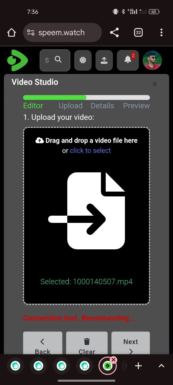 We have been constantly working and monitoring the behavior of video uploads to IPFS. Several users have reported a cut in the rise after a certain time. We applied changes to our server to maximize the disconnection time of the request, however this did not fully solve the problem.