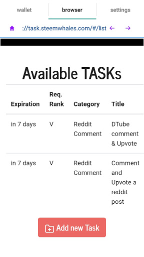 If we could get https://task.steemwhales.com on the dapp browser list it could help in ways we can only begin to imagine now, because that wallet people earn steem engine TSk tokens from mobile phones,