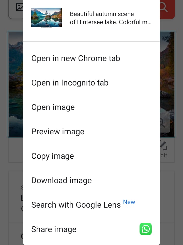 - Then you have to click on the image and it will show options of save image, download image, share image, etc. So, you have to click on the save or download.