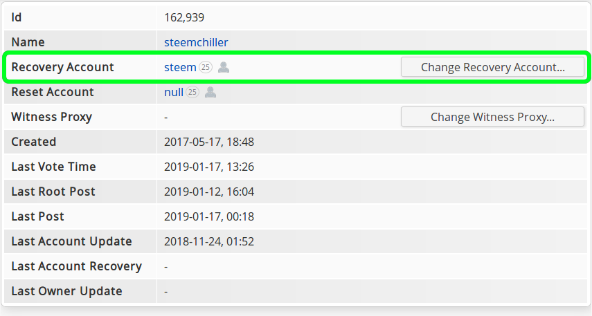 Interesting: In the image you used in the 'Recovery' account info, you show the example account as being 'steem' with Rep of 25