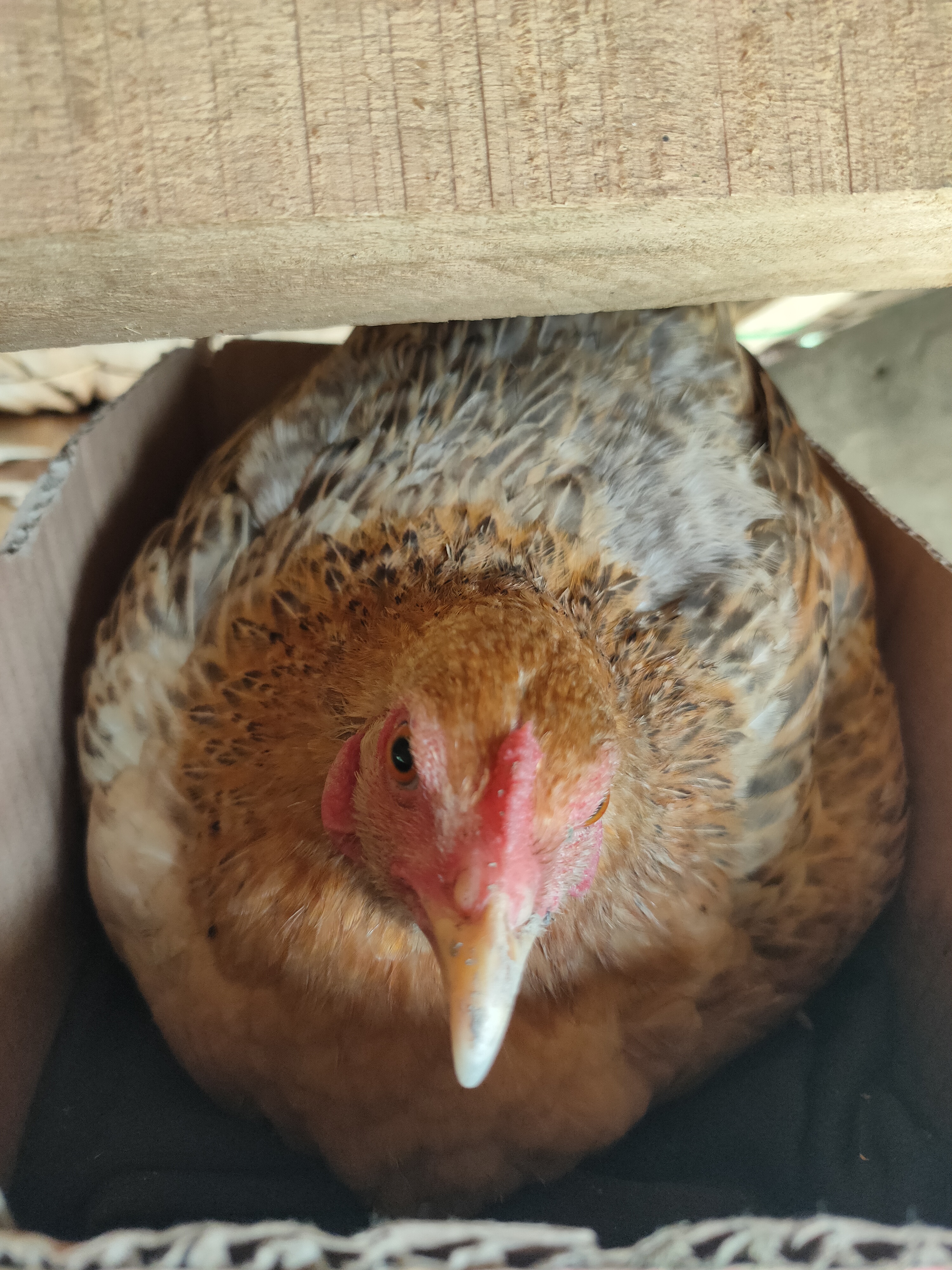 My photo this time is a chicken. while I was sitting near the house. I saw a chicken laying eggs. he hides in an indomie box which is used as a place to lay eggs. This chicken can usually lay 8 to 15 eggs at a time.