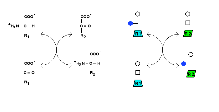 amino acid A +keto acid B--> amino acid B + keto acid A.