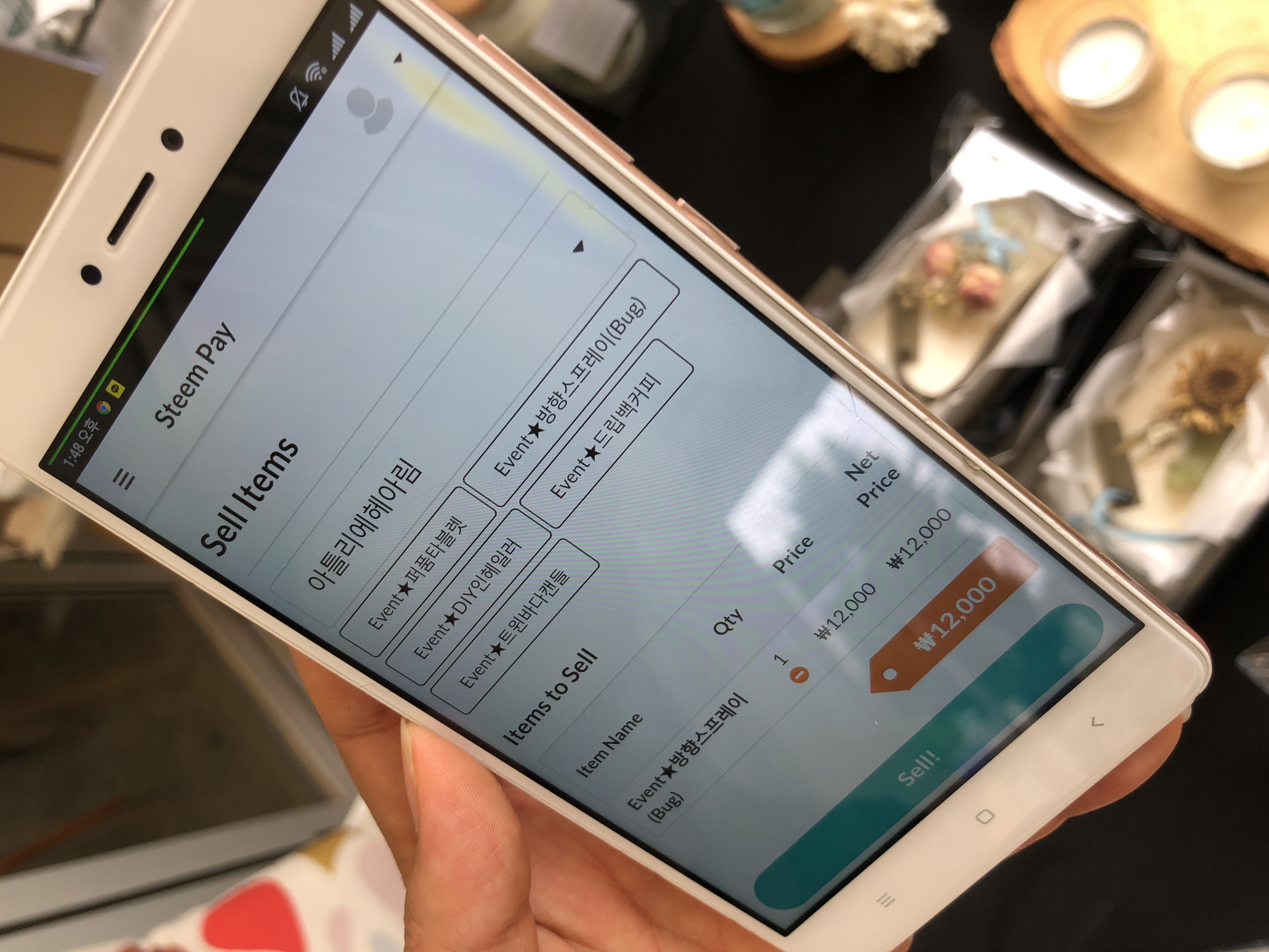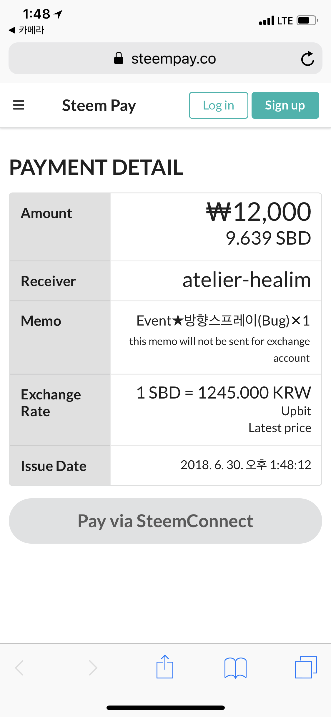 아내가 아틀리에 헤아림 부스에서 방향 스프레이를 보고 아이를 위해 구입하고 싶어해서 거래했습니다. 생애 첫 스팀 달러 거래입니다. 만세! 비누 두 개와 벌레 물림 방지 스프레이를 서비스로 받았어요(감사합니다! 잘 쓸게요). 스팀 달러 결제 과정은 위의 사진을 보시다시피 무척 간단합니다. 카메라로 QR 코드를 찍으면 다음과 같은 결제 정보가 나오고, 결제가 자동적으로 이루어집니다. 기존의 신용카드 거래만큼 빠르고 편합니다(문화충격!).