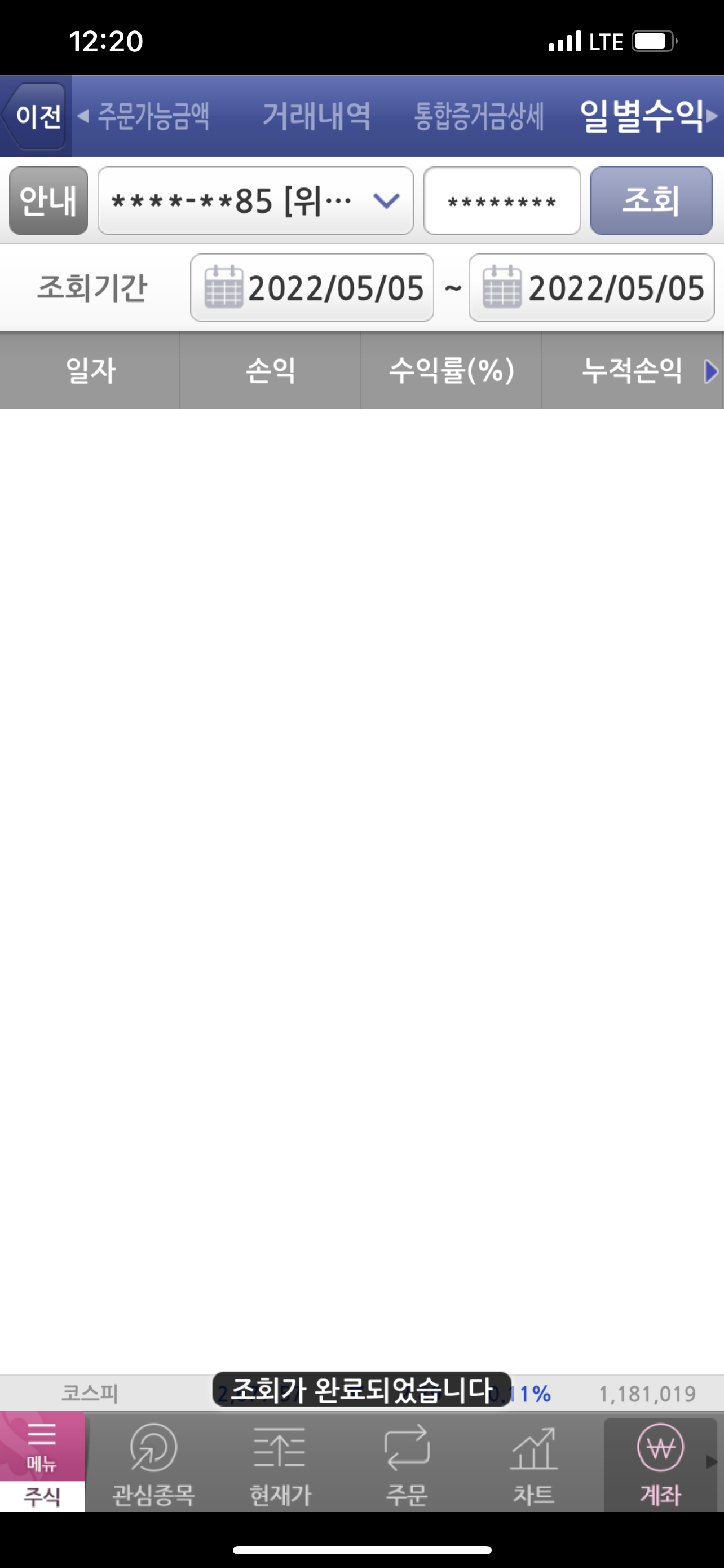 3일에 수익실현을 하지 않은 제 욕심이 부른 손실입니다.
