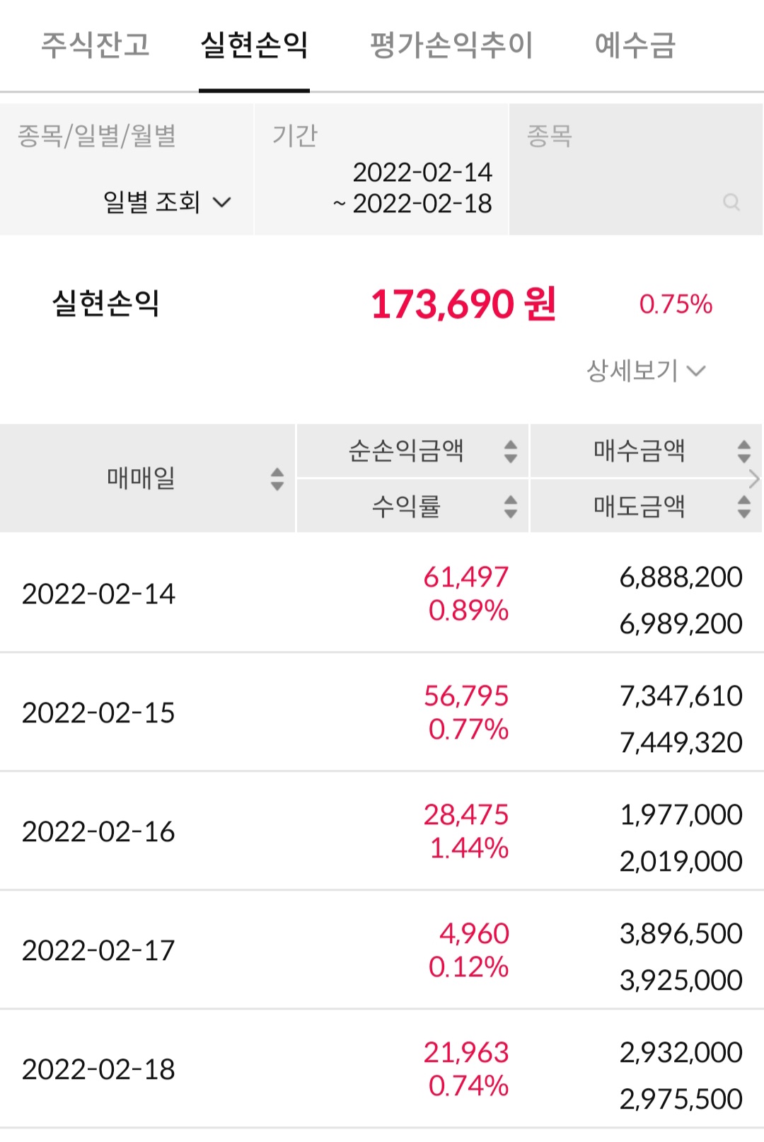 2월 3주 국내주식 수익 정산