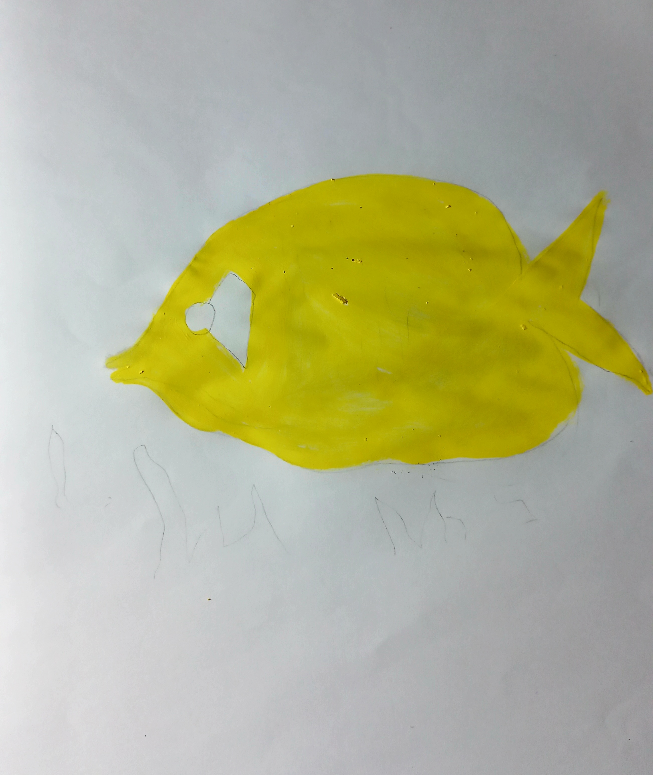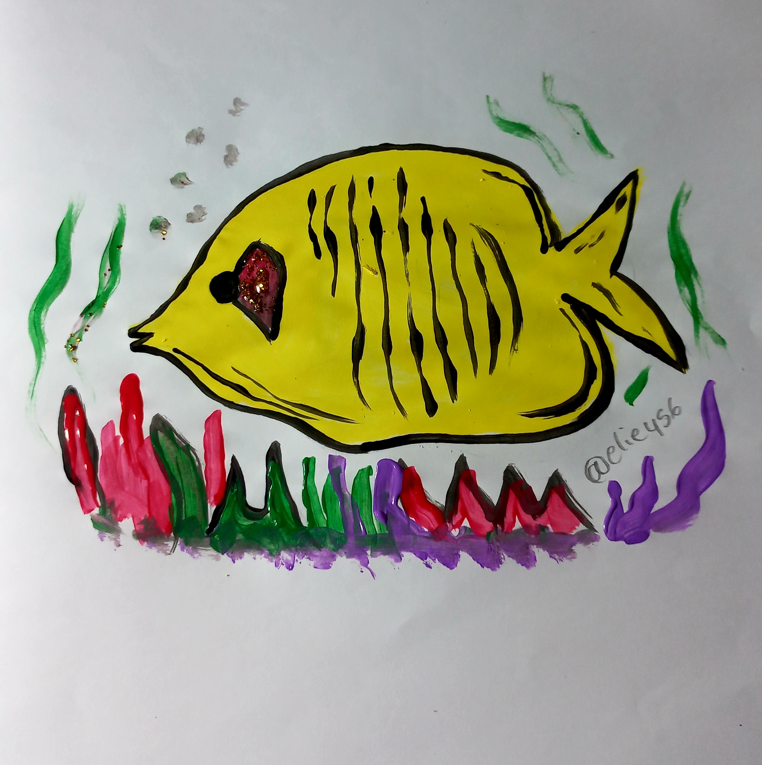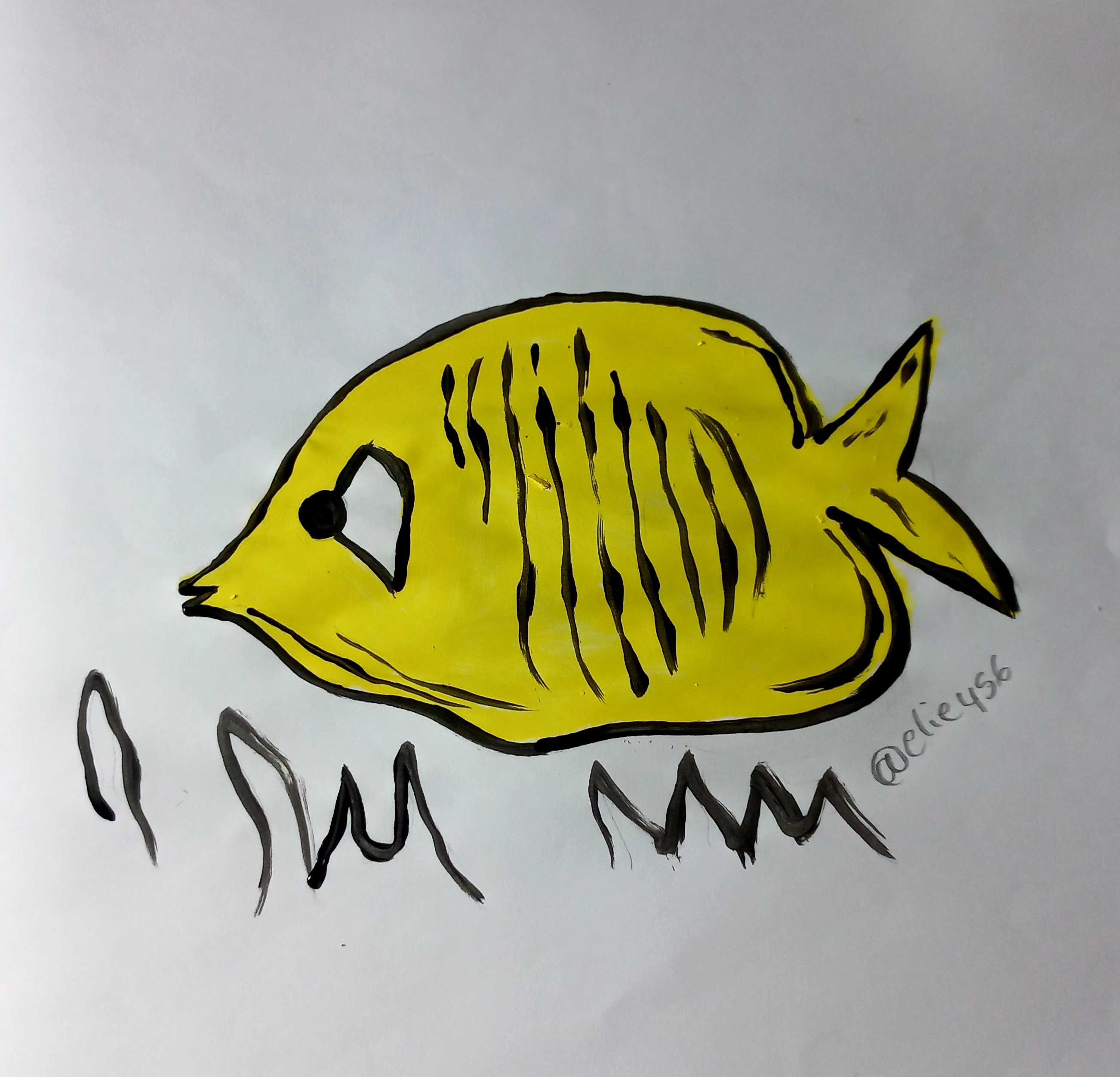 Dibujando un pez amarillo/ Drawing a yellow fish.