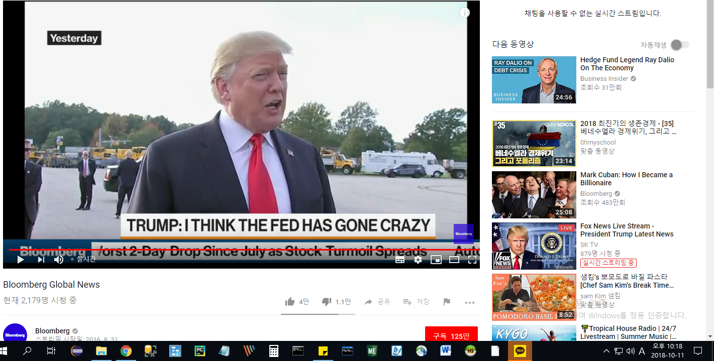 아래는 Bloomberg Global News 라는 Live 방송입니다.