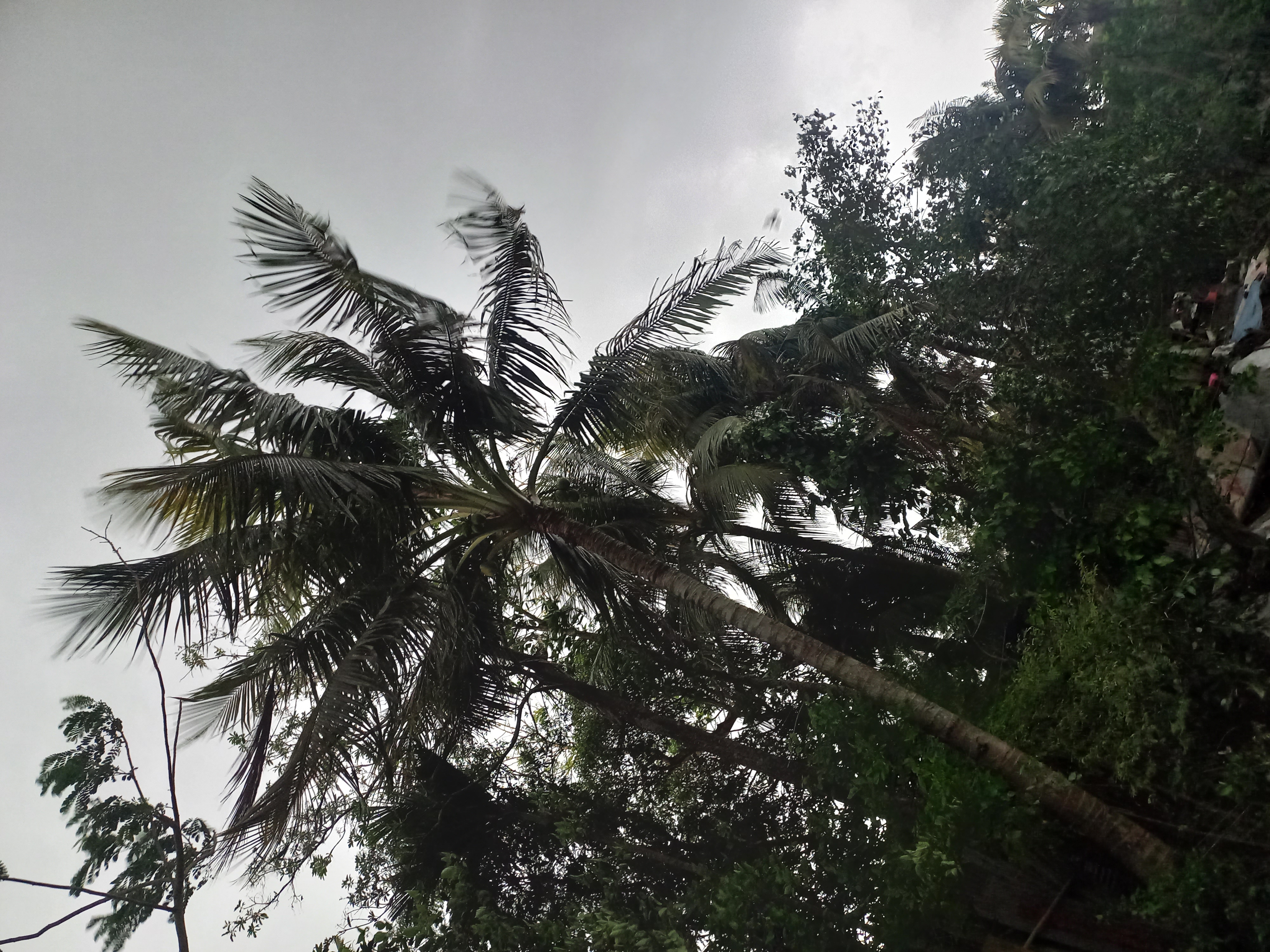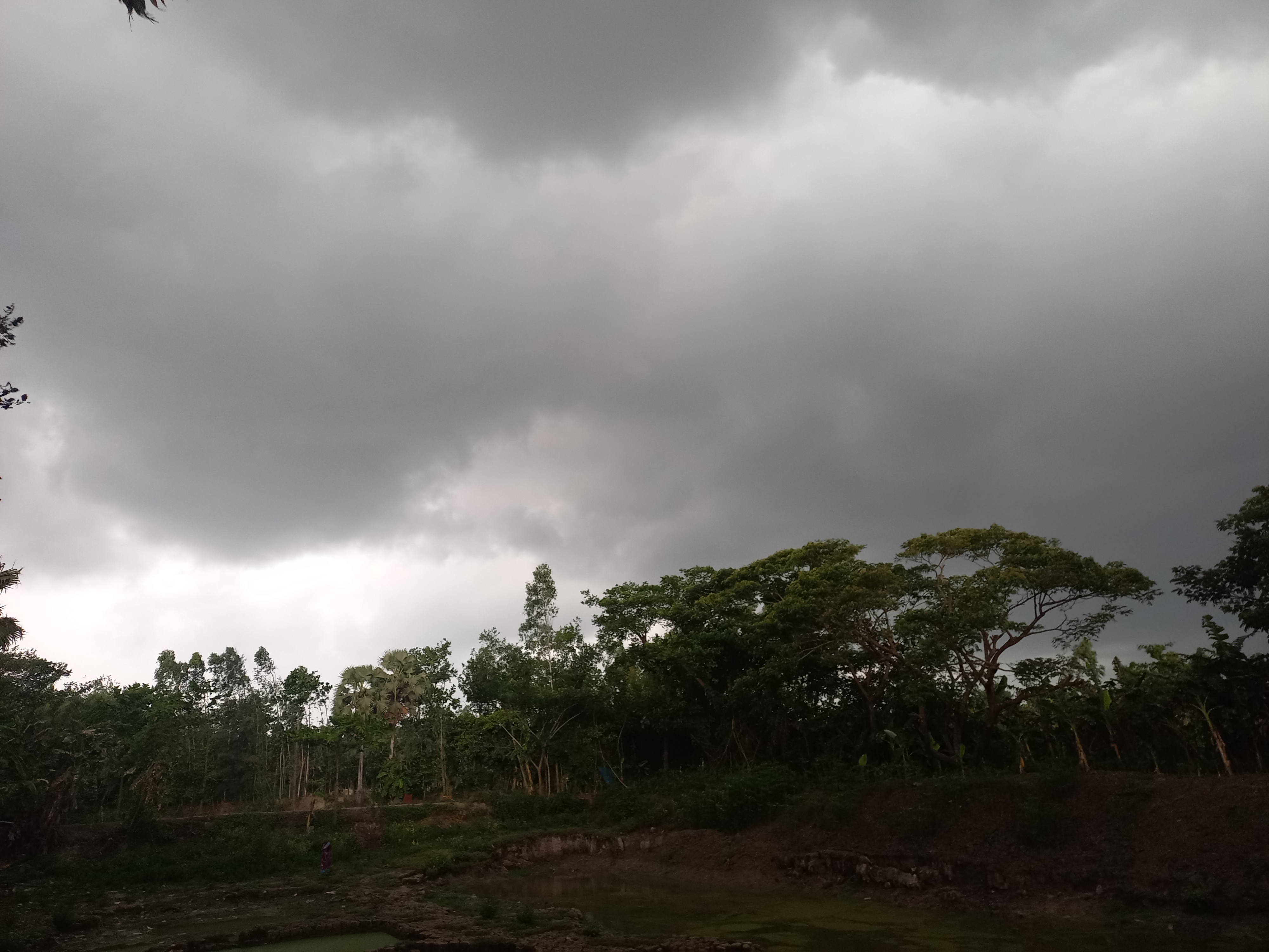 সেই ছোটবেলা থেকেই গ্রামে যখন কালবৈশাখী ঝড় হয় তখন এই পরিবেশটা আমি বেশ উপভোগ করি। গতকাল সকাল থেকেই ছিল কাঠফাটা রোদ। চারদিকে ঝল জলে রোদ আর গরম । দুপুরবেলা হঠাৎ করেই ঘন কালো মেঘে আকাশ ছেয়ে গেছে যেন দু মিনিটের মধ্যেই আলো থেকে অন্ধকার নেমে এসেছে পৃথিবীতে।তখন চারদিকে বাতাস আর বাতাস গাছগুলো যেন হেলেদুলে ভেঙে পড়ছিল।এমন সময় এত সুন্দর চিত্র দেখার জন্য আমিও বেরিয়ে পড়লাম। তারপর আমি এমন সুন্দর চিত্র ফটোগ্রাফি করলাম। নারকেল গাছগুলো যেন বাতাসের সাথে উত্তর দিক থেকে দক্ষিণ দিকে ঢলে পড়ছে। এমন দৃশ্য ধারণ করার জন্য আমি মোবাইল নিয়ে ফটোগ্রাফি করার জন্য বের হয়ে যাই। পুকুর পাড়ে দাঁড়িয়ে চারপাশের পরিবেশ খুব ভালোভাবেই উপভোগ করছিলাম। আর দূর থেকে দেখছিলাম গ্রামের ছেলে মেয়েরা দৌড়াদৌড়ি করছে আর আনন্দ উপভোগ করছে। আসলেই এমন দৃশ্য মনমুগ্ধকর।