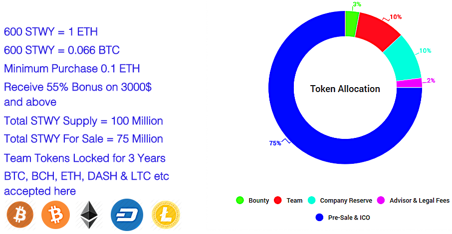 The goal of this ICO is to create a retail e-commerce marketplace where buyers and sellers can launch their merchandising and services businesses for both fiat and crypto currency payments. Storweeys vision is to simplify advanced knowledge to meet the needs of an ever-changing marketplace.