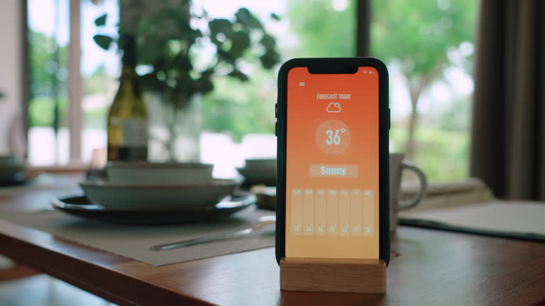 Pagi itu, matahari bersinar terang, menerobos masuk melalui jendela besar ruang makan. Di atas meja kayu yang tertata rapi, sebuah ponsel berdiri tegak di penyangganya, menampilkan ramalan cuaca hari ini: 36°C, cerah.