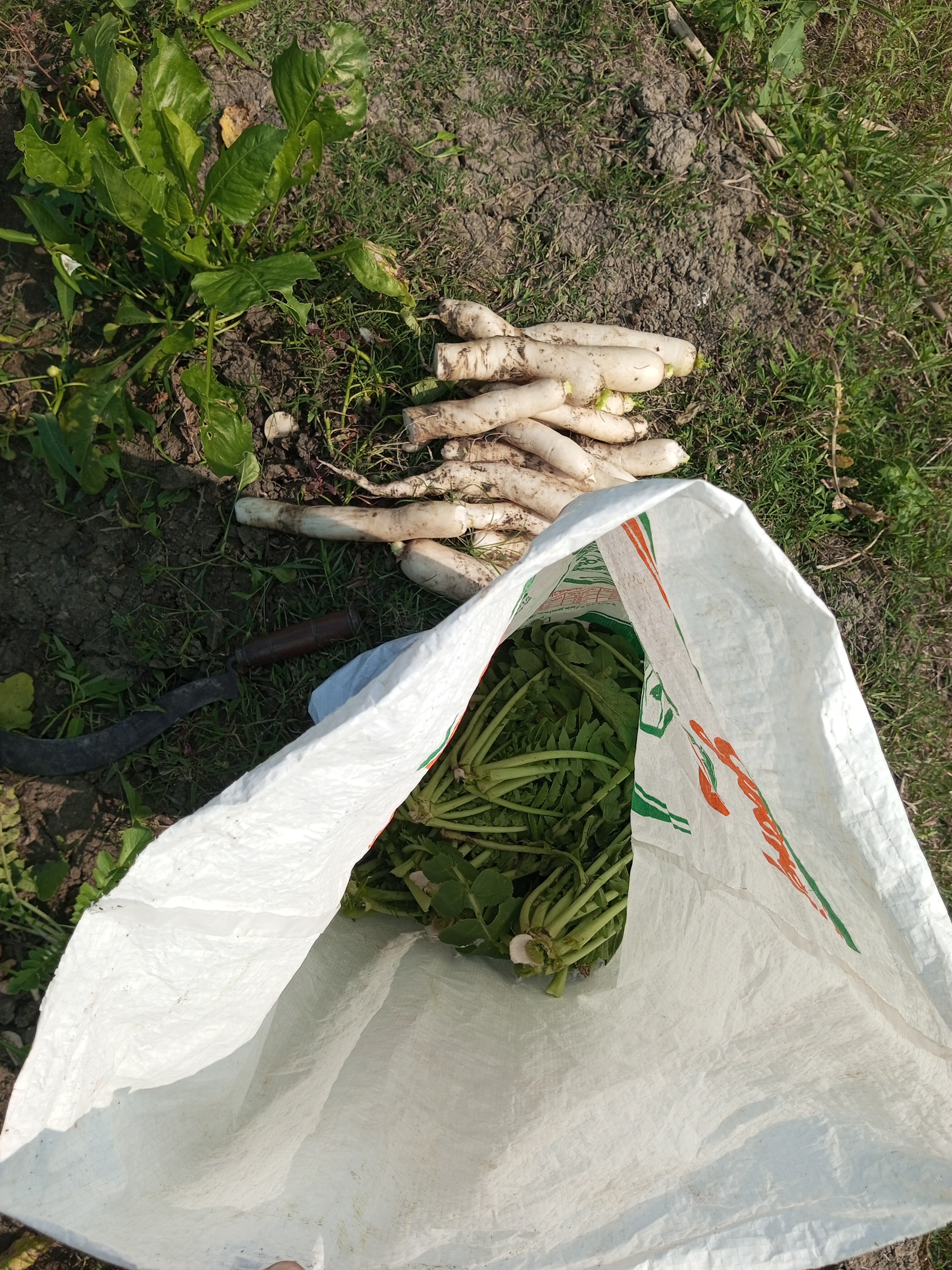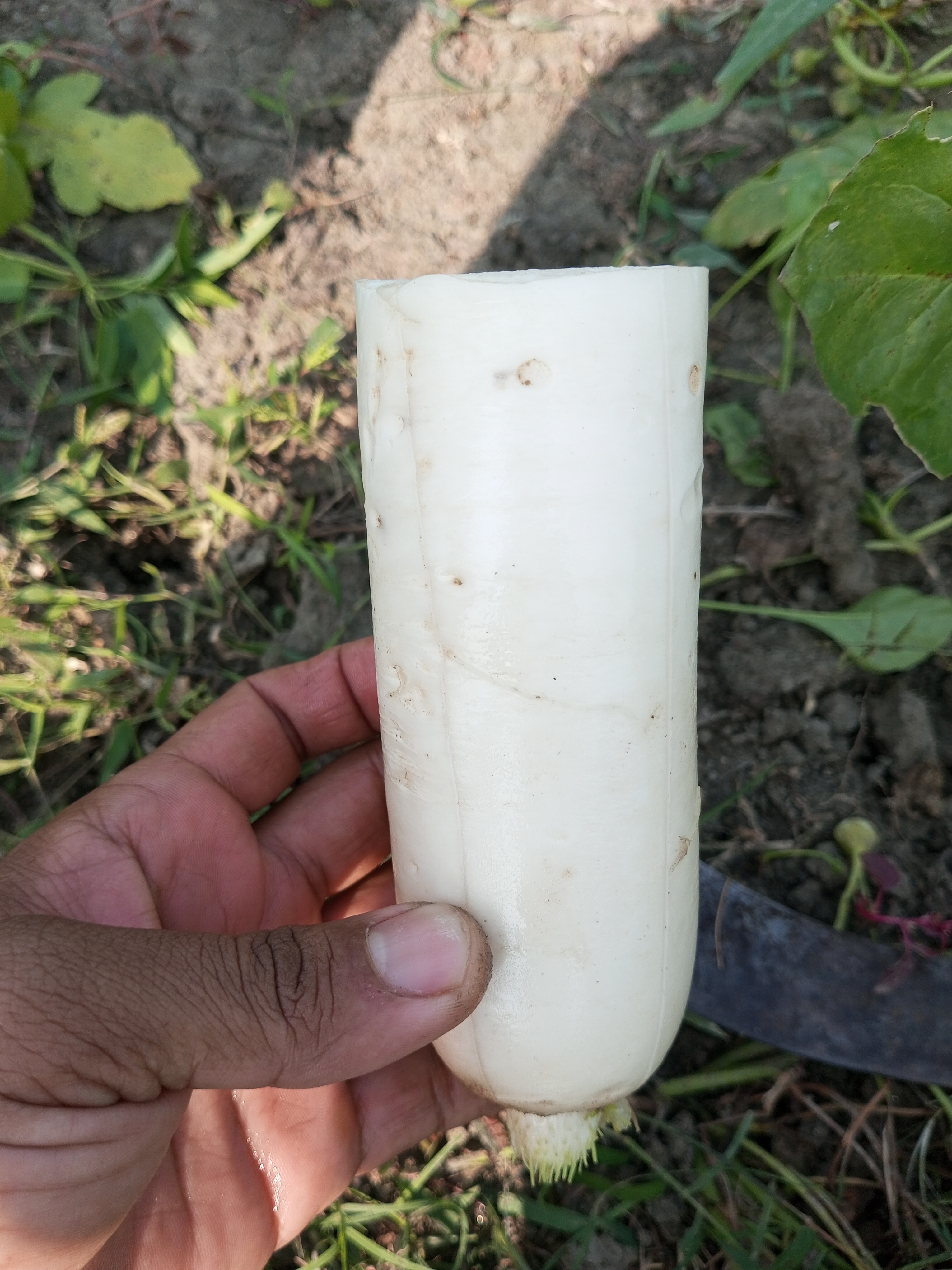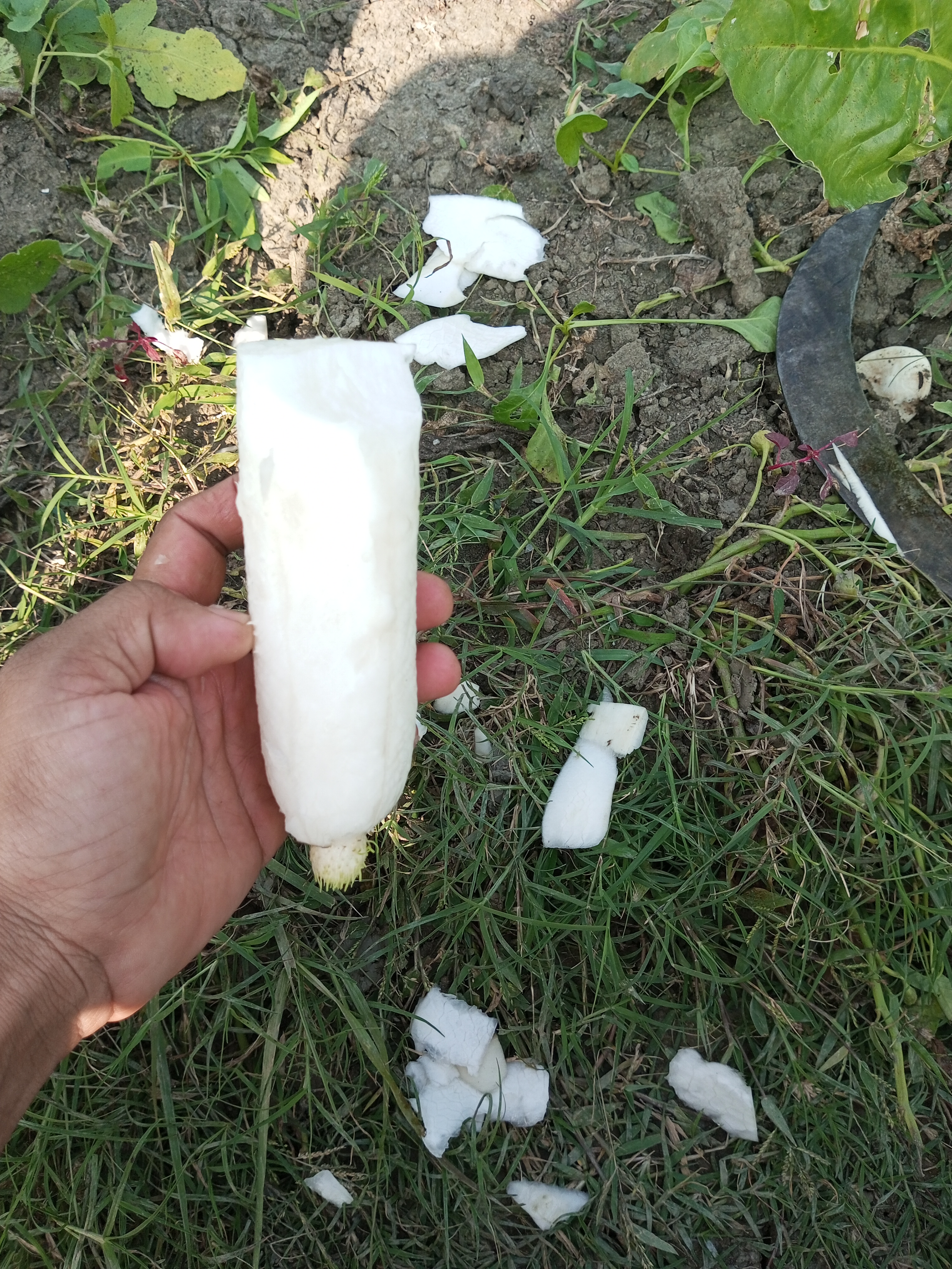যাইহোক এমন দৃশ্য সত্যি খুবই খারাপ লাগলো। মারুফের দাদা তখন রাগে রাগে মোলাগুলো হাইস্যু দিয়ে সব কেটে সাফ করে ফেলল। জমিতে তখন অনেক মূল ছিল। আমরা জানি মুলা সাধারণত যখন বড় হয়ে যায় মাটির উপর অংশে বের হয়ে আসে প্রথম ফটোতে বুঝতে পারছেন। ঠিক এবং হাইব্রিড জাতীয় ভালো মানের মূলা। সারা জমিতে যা ছিল একবারে হাইসু দিয়ে সাফ করার মত কাটতে কাটতে কেটে ফেলেছিল। আর ওই মুহূর্তে বারবার বলতে থাকলো 'শালা হারামজাদারা তোদের যে কয়টা লাগবে তুলে নিয়ে যা নষ্ট করবি কে তাও তো জানতাম খাওয়ার জন্য তুলে নিয়ে গেছে'। আর আমাদের বলছিল যার ইচ্ছা সে নিয়ে যা বাড়িতে। কিন্তু আমরা কেউ সে মূলায় হাত দিলাম না। কারণ মূলা কি করবো আমরা। শুধুমাত্র দেখলাম মানুষের মূলার প্রতি এই অবিচার অত্যাচার। পাশাপাশি বৃদ্ধ একজন মানুষকে হয়রানি দিয়ে মনে কষ্ট দিয়ে মুলাগুলো নষ্ট করার কাজ করে দিয়েছে।