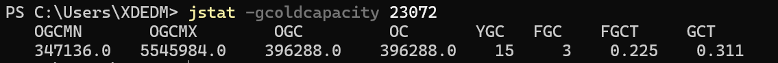 `jstat -gcoldcapacity [pid]