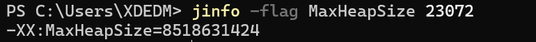 jinfo -flag <flag_name> [pid]:打印指定名称的 JVM 参数的当前值。例如,jinfo -flag MaxHeapSize [pid] 将打印堆内存最大配置。