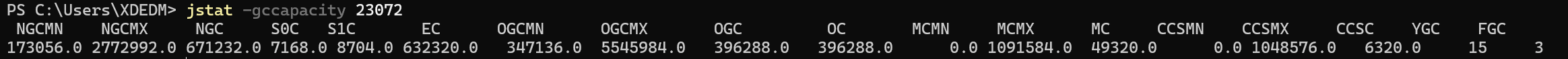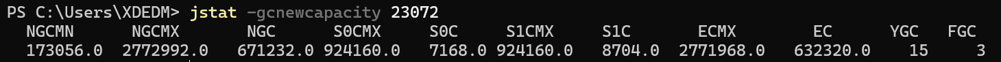 jstat -gcnewcapacity [pid]