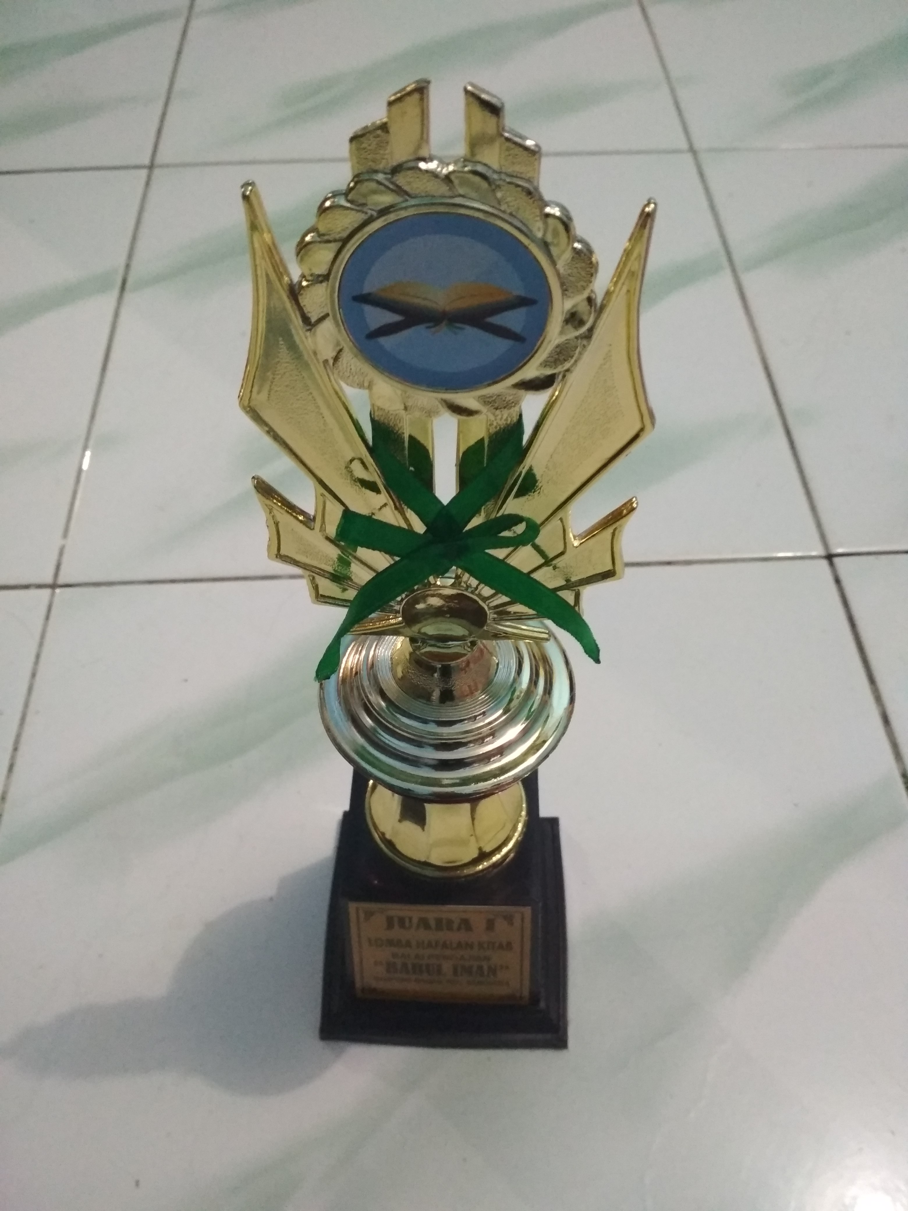 Piala ini adalah sebagai hasil dari pengajian yang telah ia lakukan selama 9 bulan, keponakan yang pintar dan cerdas.