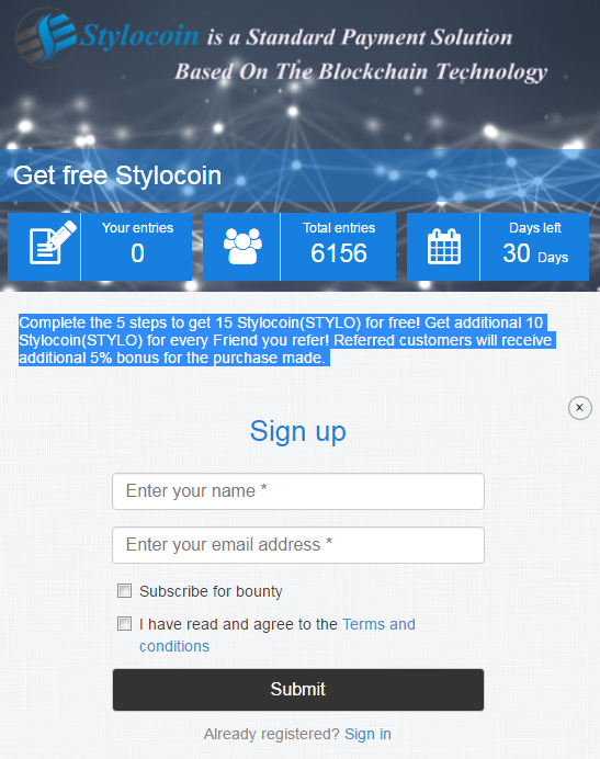 Complete the 5 steps to get 15 #Stylocoin for free! Get additional 10 Stylocoin for every Friend you refer!