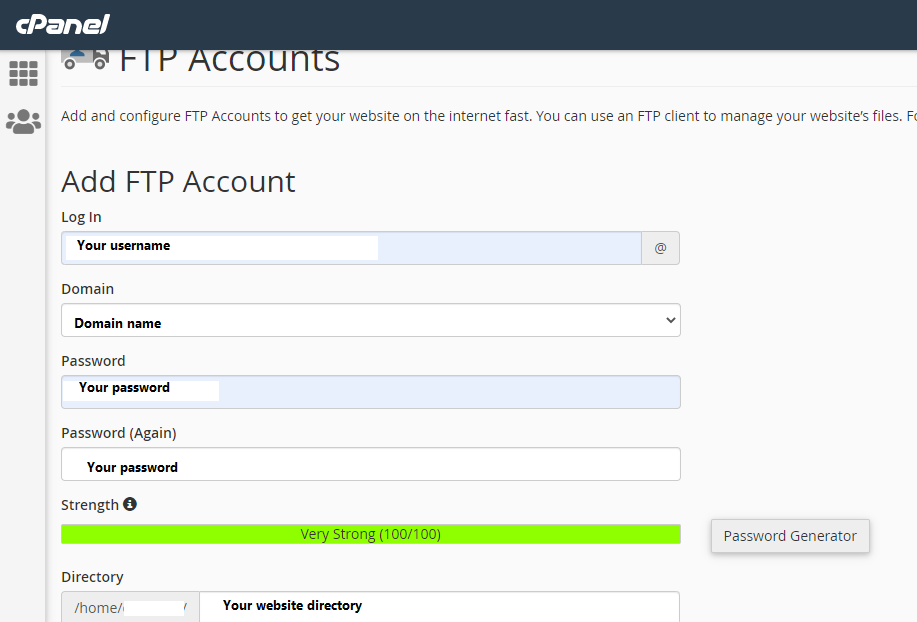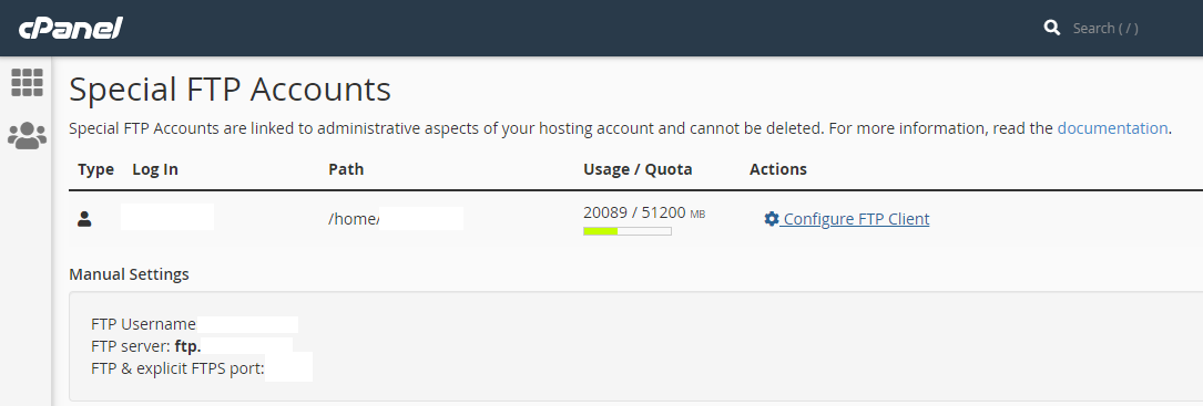 Create an FTP-account: You will need to login to your server Cpanel.