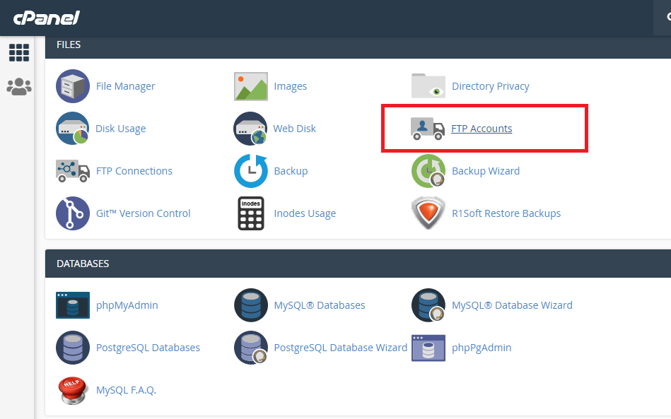 After successful login: then click on the FTP Accounts: