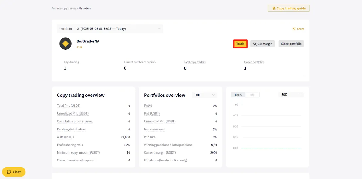 [Adjust Margin]:Add or withdraw funds (you must maintain at least 100 USDT in your lead trader account before the project is closed).
